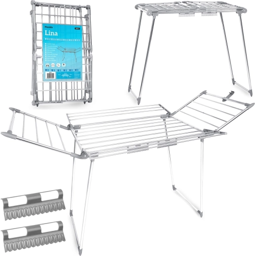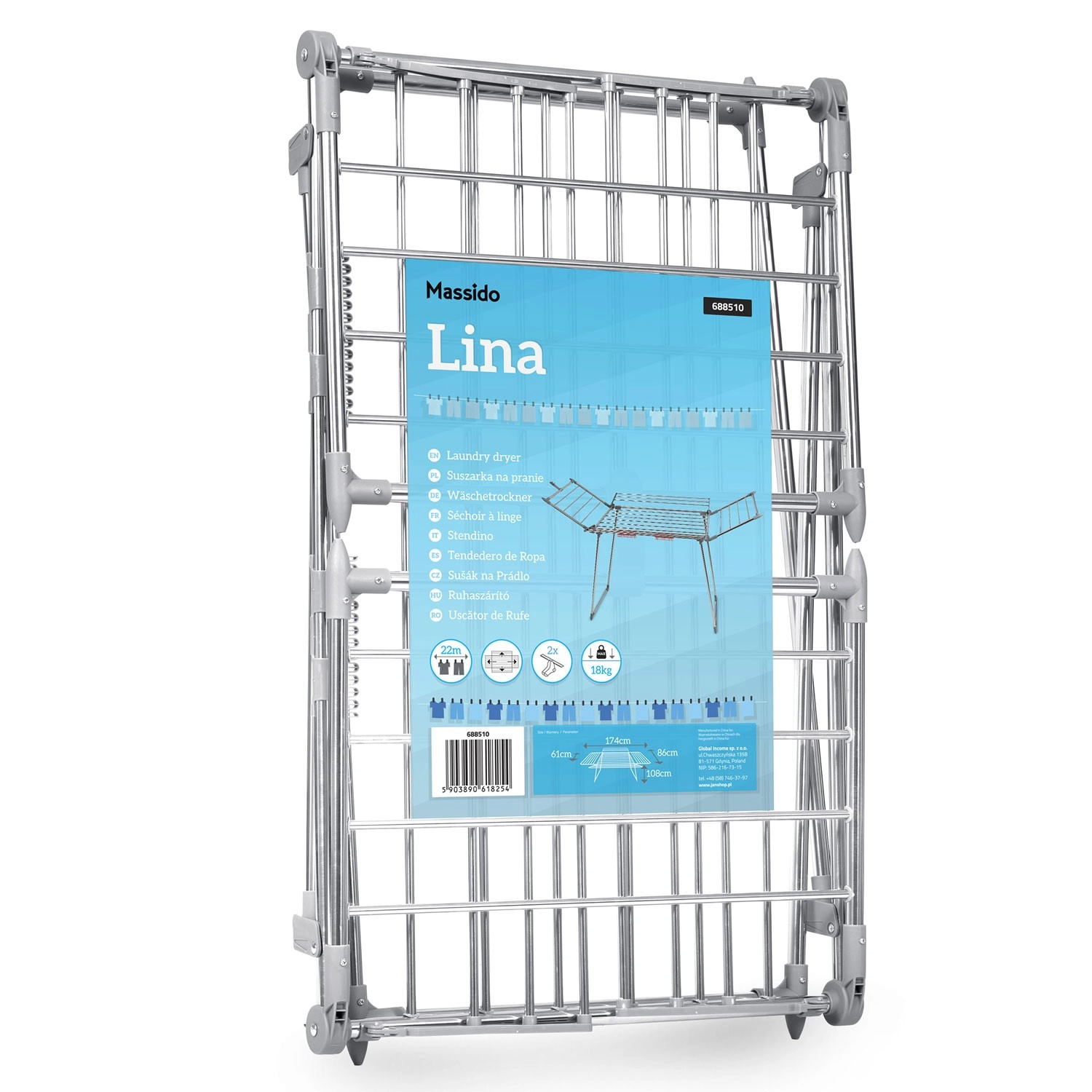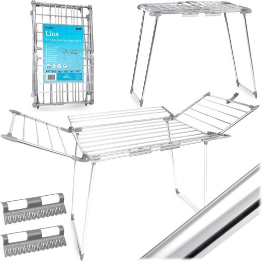 Massido Lina er en elegant og holdbar tørrestativkonstruktion i rustfrit stål, der klarer hverdagsbrug både i hjemmet og på altanen. Takket være den gennemtænkte afstand mellem stavenes luft cirkulerer frit, tøjet tørrer hurtigere og krøller mindre – ofte uden behov for strygning. Det moderne udseende passer ind i ethvert hjem, og den nemme vedligeholdelse sikrer langvarig tilfredshed.