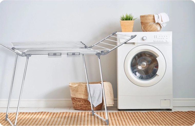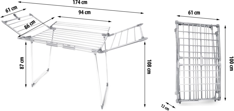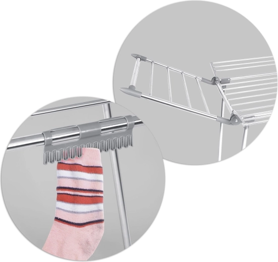 Rigeligt med plads til skjorter, håndklæder og fint undertøj. Takket være de klogt placerede stave tørrer tøjet hurtigere og bliver mindre krøllet.