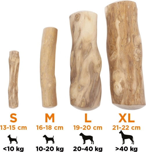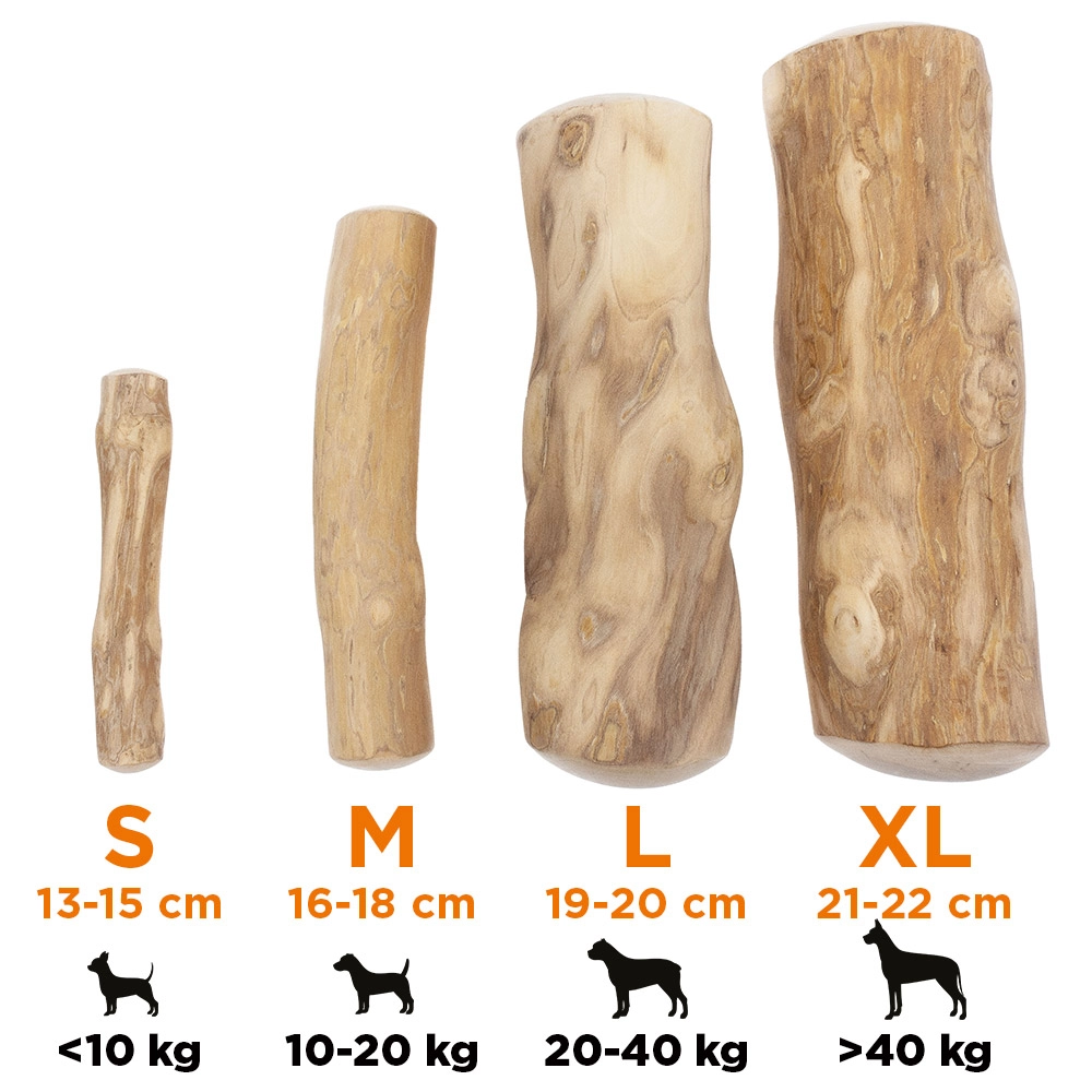 Tyggepinden af kaffetræ er et ideelt valg for hunde, der elsker langvarig og intens tygning. Kaffetræ er meget hårdere end almindeligt skovtræ, og under tygning frigives kun fine træfibre, som hunden let kan sluge og fordøje. Det gør tygningen ikke kun underholdende, men understøtter også naturligt den dentale hygiejne og hjælper med at reducere plak og tandsten.