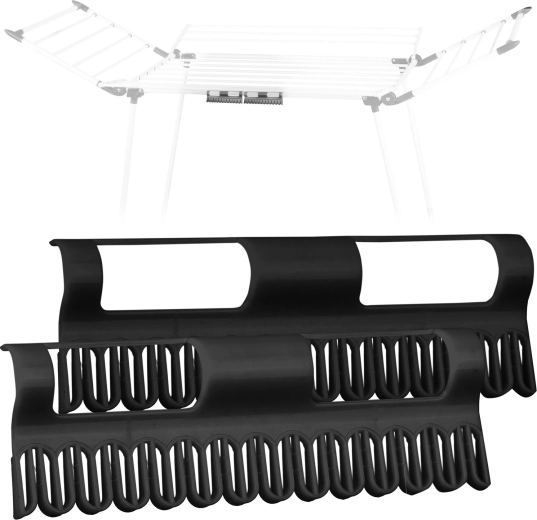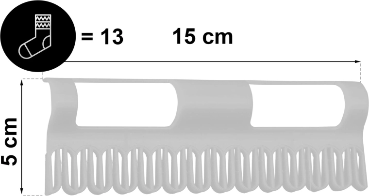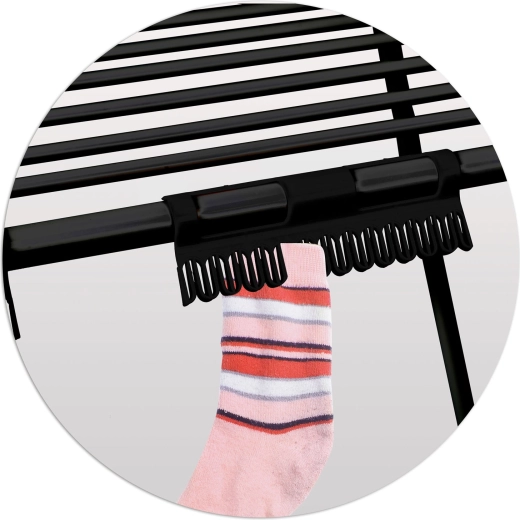 Hver holder har kapacitet til op til 13 par, så du i sættet kan tørre helt op til 26 sokker ad gangen. Det robuste plastdesign er modstandsdygtigt over for fugt og almindelig slitage. Den enkle påklikning på stativets sidestænger sparer plads til større stykker tøj.