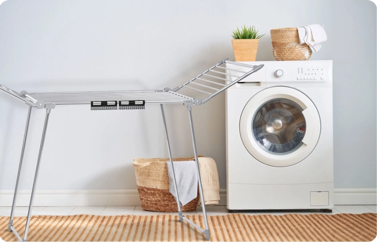 - Klip/klik-montering på tørrestativets stang