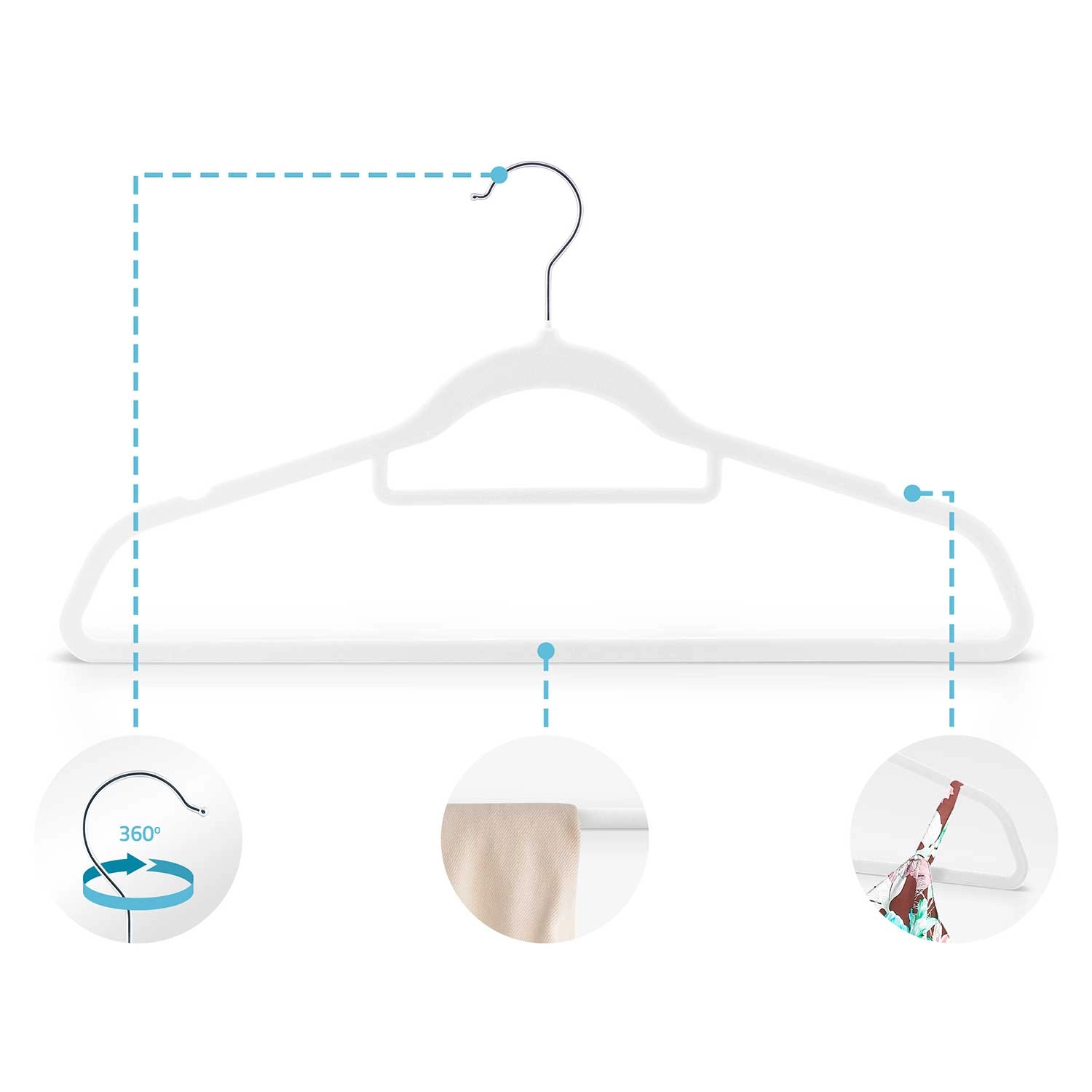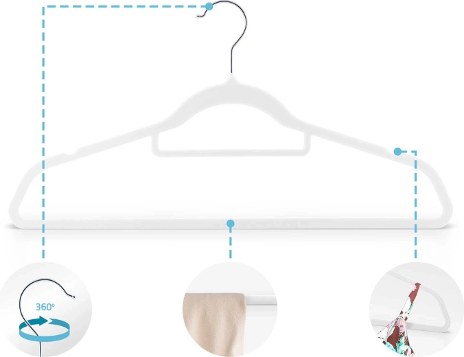- Alsidig anvendelse: skjorter, blazere, frakker, kjoler, bukser og tilbehør på én hanger.
