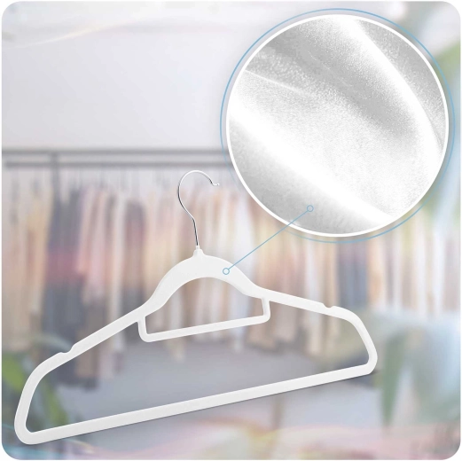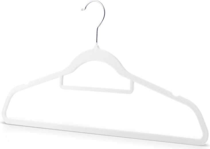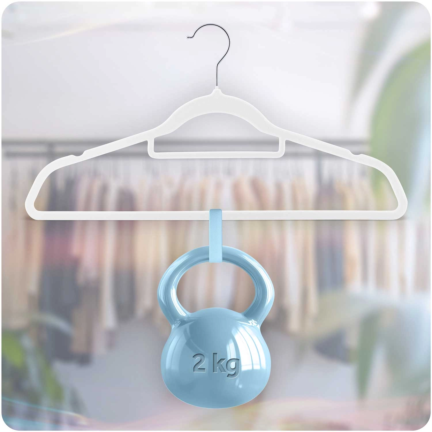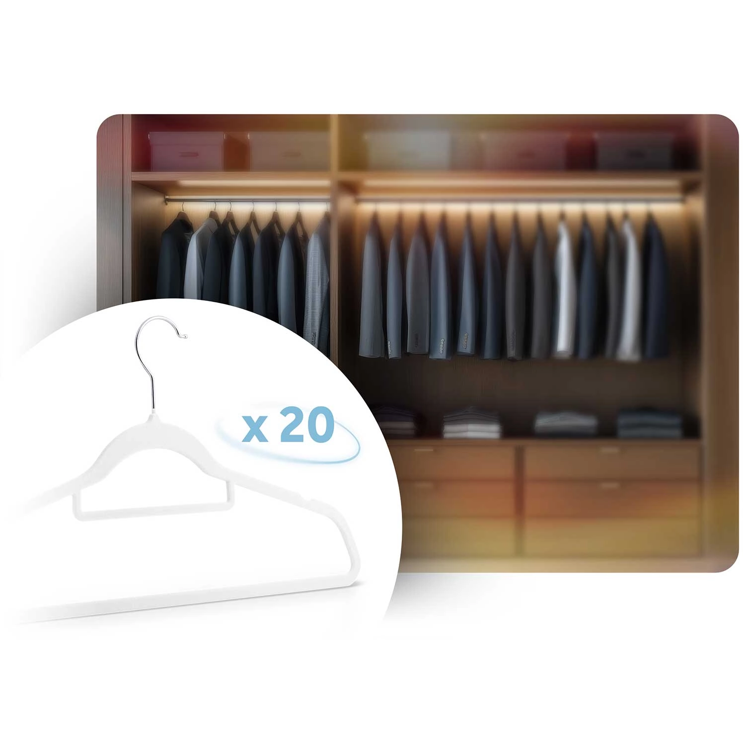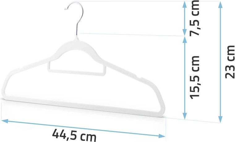 Organisér garderoben med elegance og orden med et sæt på 20 velourhangers MASSIDO. Deres skridsikre velour beskytter tøjet mod at glide, den dreielige stålkrog sikrer nem ophængning, og den nederste stang er ideel til bukser, tørklæder eller slips. Hangerne er stærke, slanke og pladsbesparende, så de bærer selv tungere stykker uden at deformere formen.