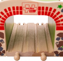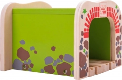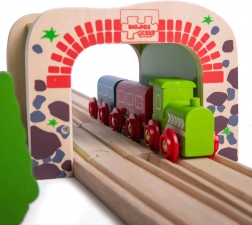 Den dobbelte trætunnel BIGJIGS RAIL bringer mere action og mere flydende drift til verdenen af trætogbaner. Takket være den dobbeltsporede gennemkørsel kan to tog køre igennem på én gang, hvilket understøtter fælles leg og udvikling af koordination. Den robuste konstruktion og det attraktive motiv af mursten og sten giver banen et realistisk udseende.