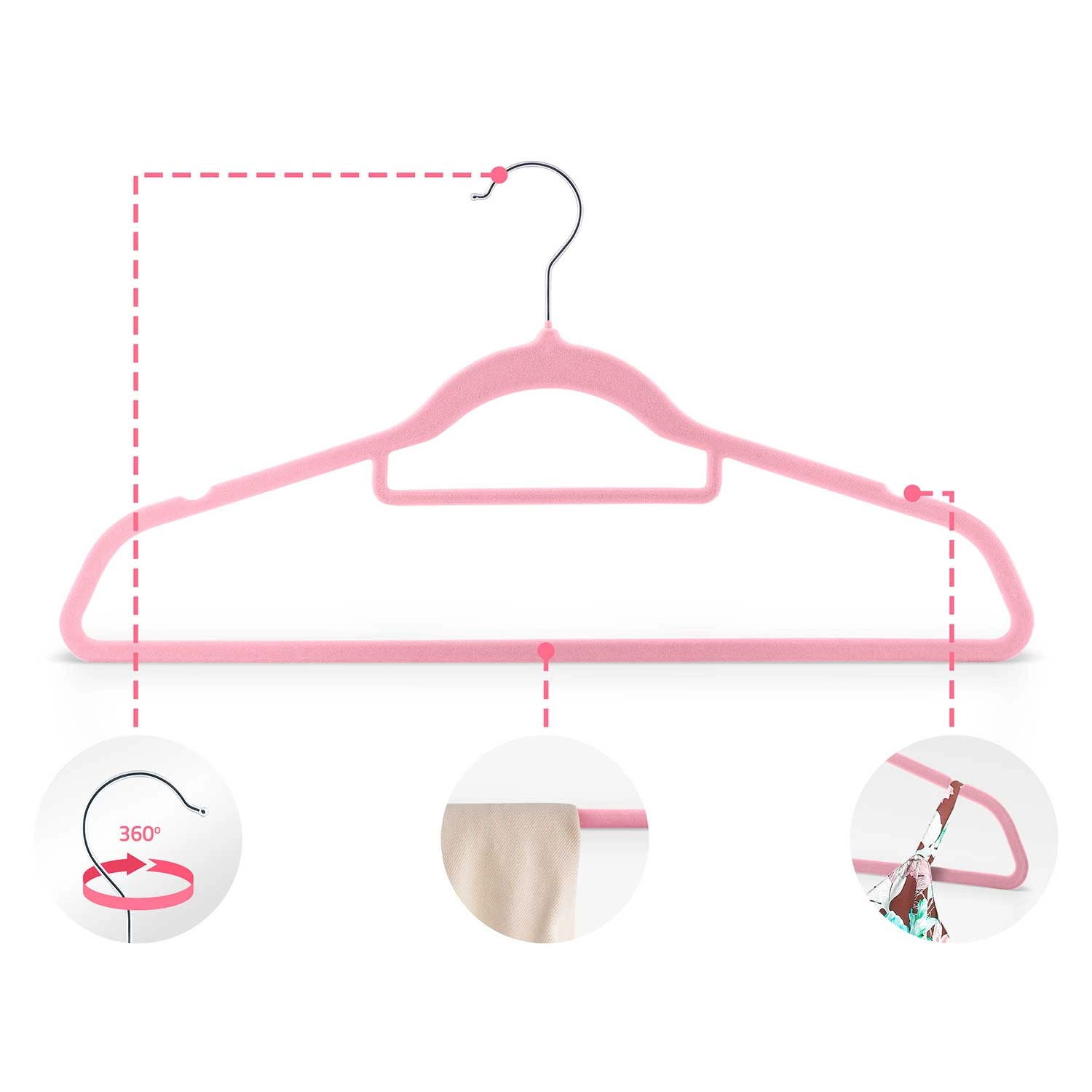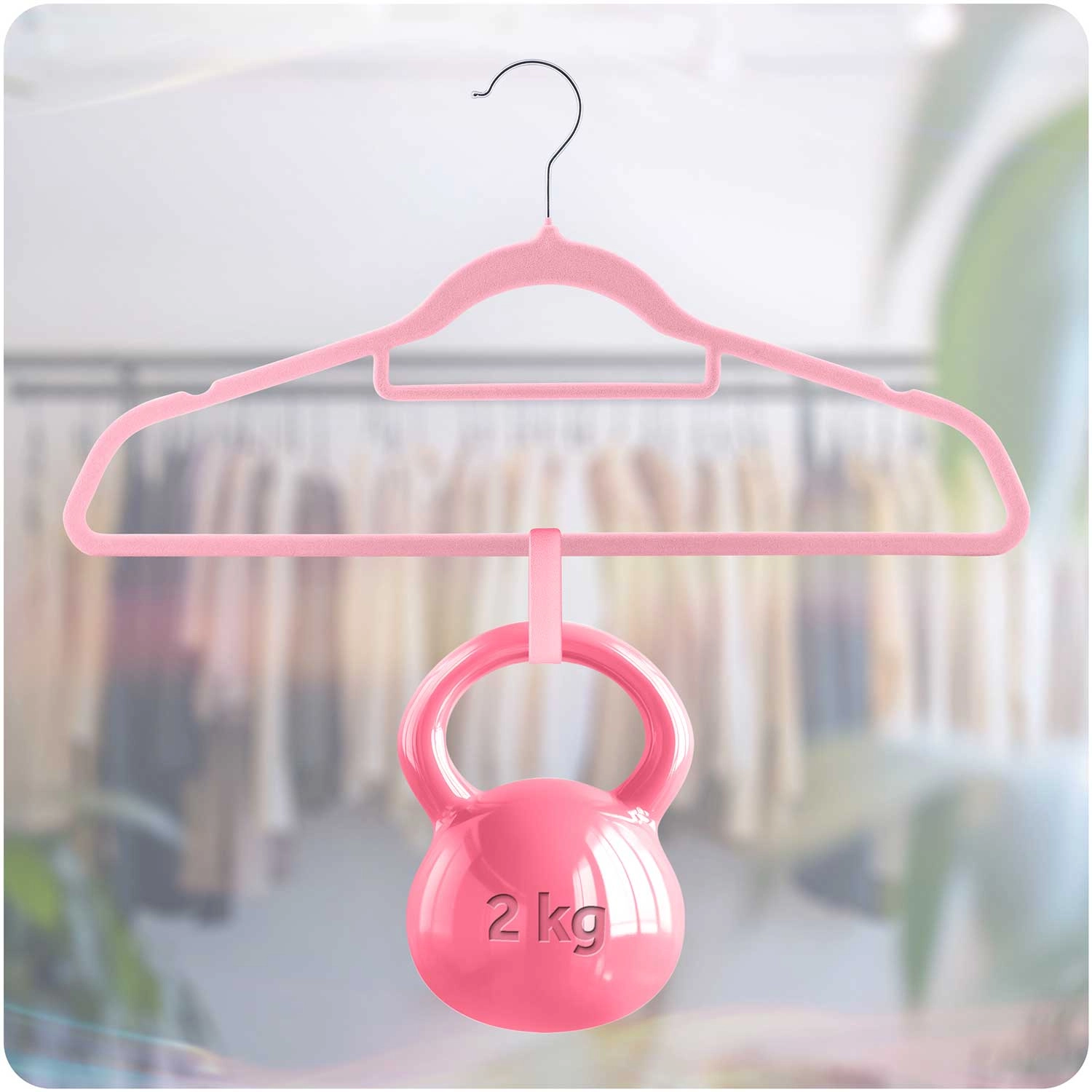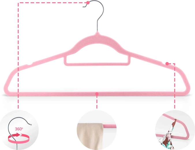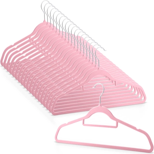 Et stilfuldt og praktisk sæt med 20 bøjler hjælper dig hurtigt med at få styr på skabet. Den skridsikre velour forhindrer, at sarte materialer glider, mens den gennemtænkte form med udskæringer på skuldrene holder også toppe med tynde stropper. Den roterbare stålkrog gør sortering og ophængning nem uden unødig anstrengelse.