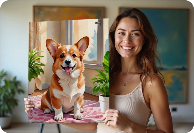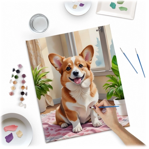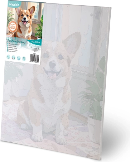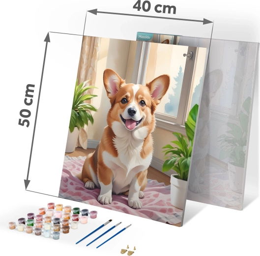 Massido-sættet til maling efter tal med det søde CORGI-motiv er et fremragende valg til afslapning, kreativ udfoldelse og hyggelige stunder med familien. Grundlaget er et kvalitetslærred på træramme med fortrykte felter og tal, som præcist svarer til farverne i æsken. Med de intense, dækkende akrylfarver opnår du dybe farver og et flot resultat uden forudgående erfaring.