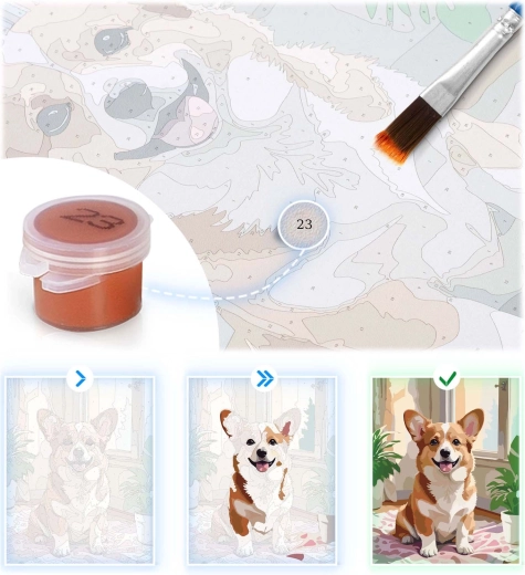 Dette maling-efter-tal-sæt er ideelt til både voksne og børn, som nemt vil skabe et imponerende billede med hvalpe. Lærredet er allerede opspændt på blindramme og klar til maling, så du kan gå i gang med det samme. Takket være den farvede underlægning og tydelige tal er processen intuitiv og resultatet overraskende professionelt.