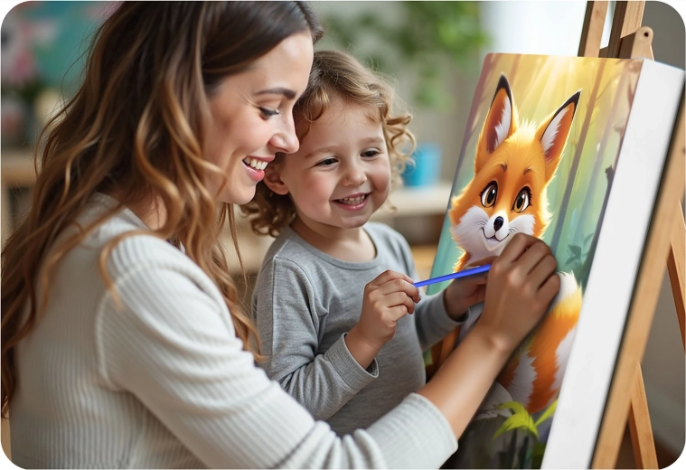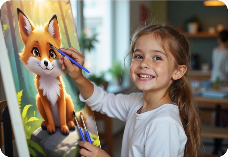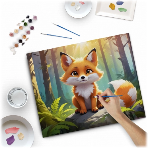 Opdag glæden ved at skabe med det kreative sæt maling efter tal 40 × 50 cm med motiv af en sød ræv. Fortrykt lærred på ramme, 30 dækkende akrylfarver, 3 pensler og ophængskroge – alt, hvad du behøver for at male et smukt billede, selv som begynder.