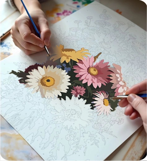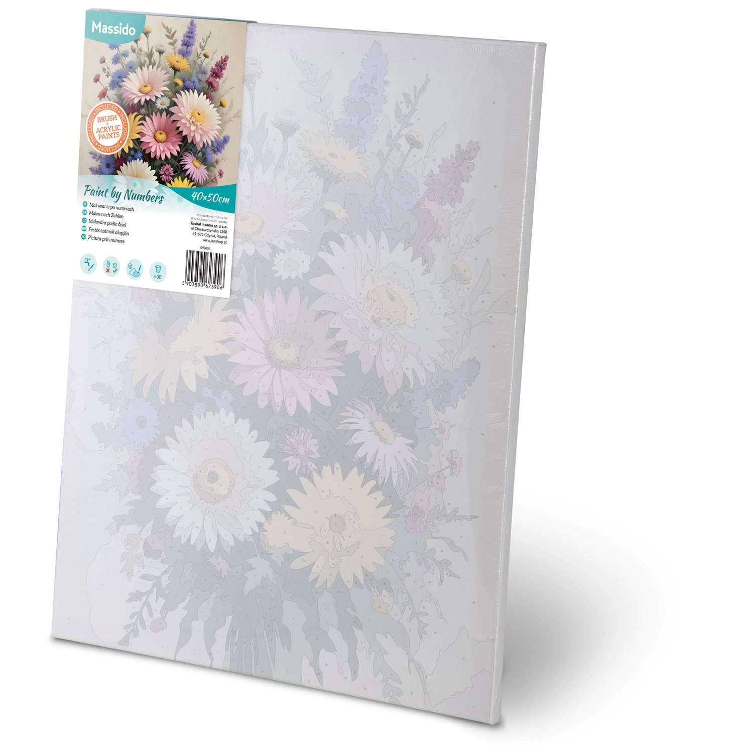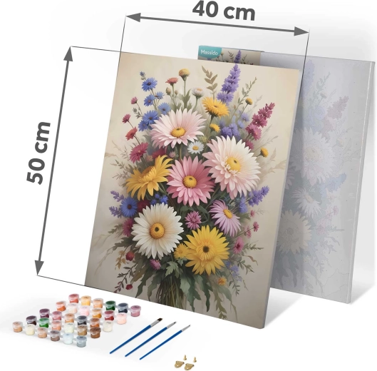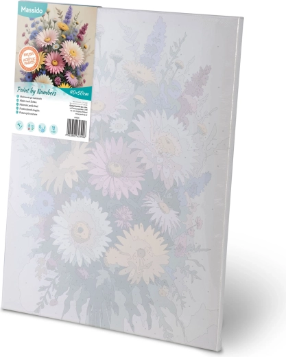 Skab dit eget blomsterkunstværk på et kvalitetslærred på træramme. Takket være den farvede undergrund med fine linjer og tydeligt markerede felter er malingen flydende og stressfri, selv hvis du er nybegynder. Intense, dækkende farver giver en smuk finish uden at du behøver blande nuancer.