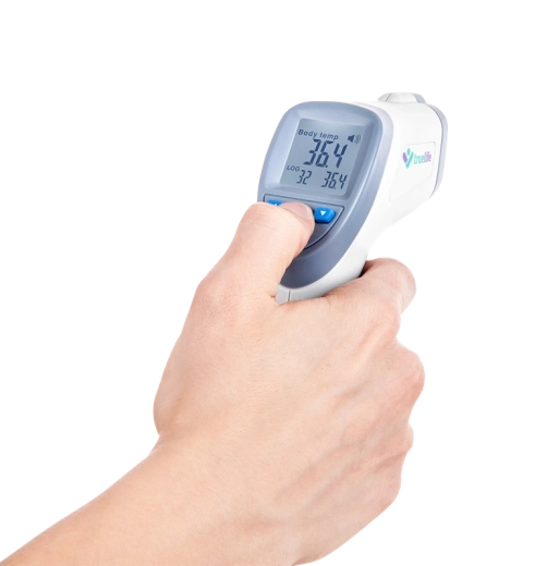 Hold blot termometeret 1–3 cm fra panden, og få resultatet med det samme. En hygiejnisk og behagelig løsning for både børn og voksne med en letlæselig LCD-skærm.