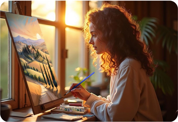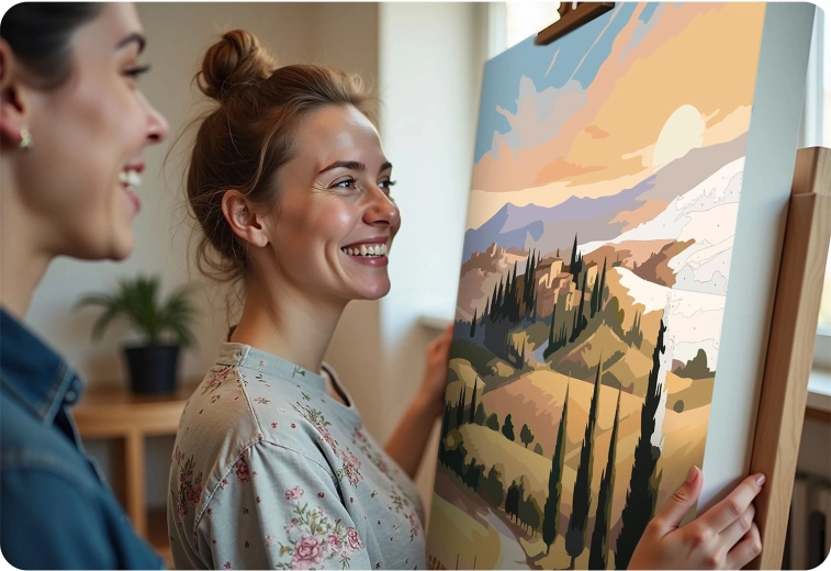 Ideel til kreativ afslapning, hygge med familien og som en original gave. Dit eget håndmalede værk giver indretningen personlighed og farve.