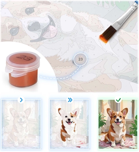 Dette premium-sæt fra Massido forvandler din fritid til en kreativ oplevelse. De fortrykte nummererede felter og den let tonede baggrund gør orienteringen nem og sikrer rene dækkede kanter. Intensivt pigmenterede farver med fuld dækkeevne kræver ingen fortynding og giver mættede, jævne toner uden gennemskinnende linjer.