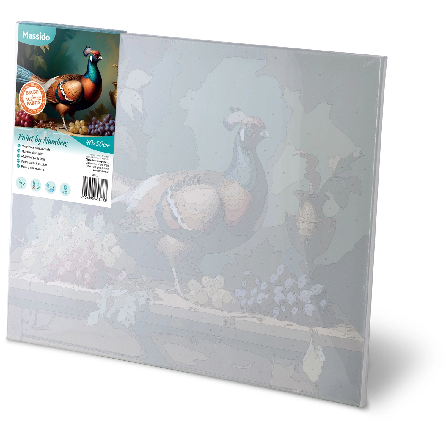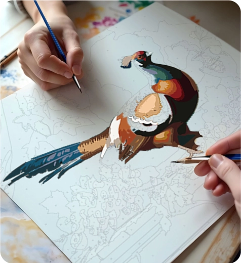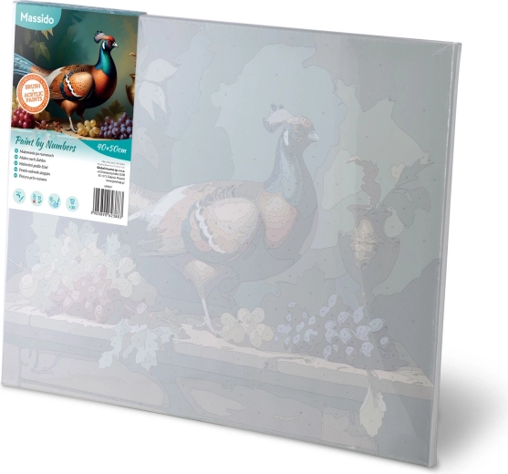 Den fortrykte, nummererede skabelon på det solide lærred guider dig til et detaljeret og farvetro billede af en fasan. Ideelt til begyndere, par og familier.