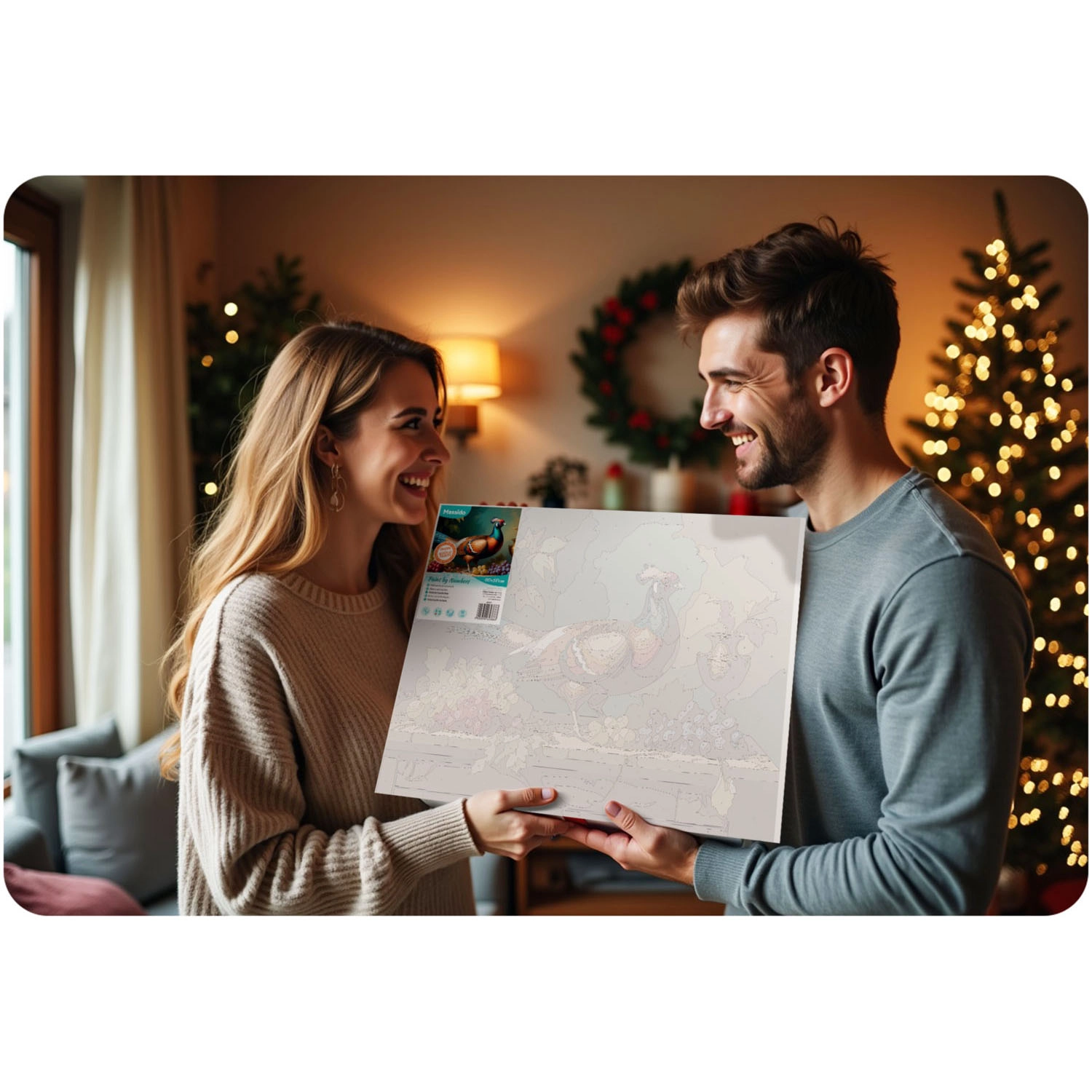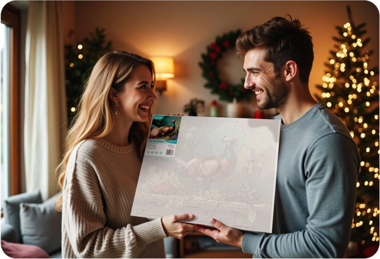 Hvad du får: et komplet gør‑det‑selv-sæt klar til maling, kvalitetspensler til både detaljer og flader samt metalkroge til nem ophængning af det færdige billede. Ideelt til afslapning, kreative stunder i familien og som en original gave.