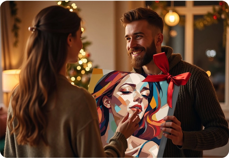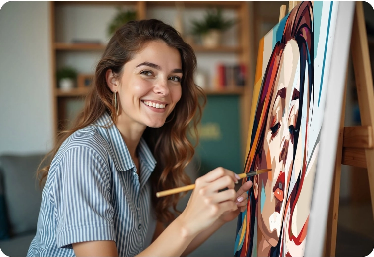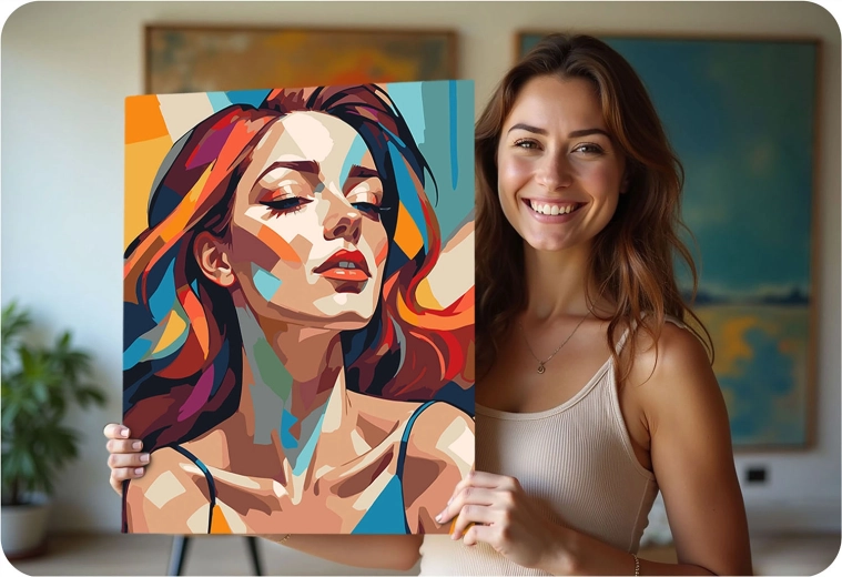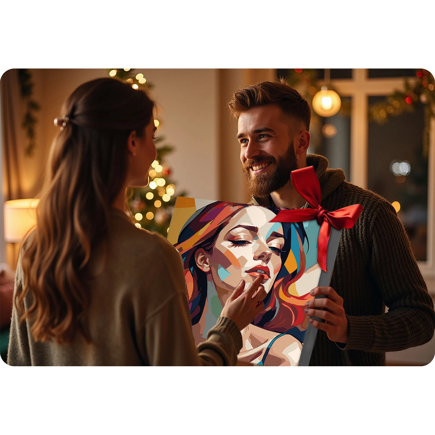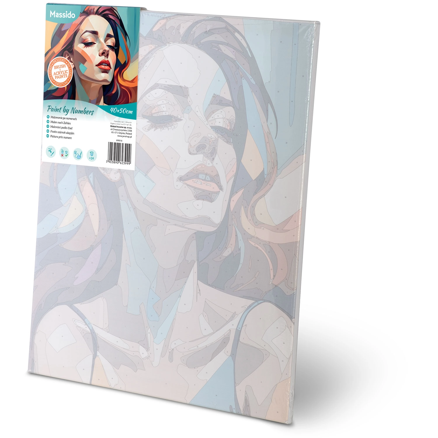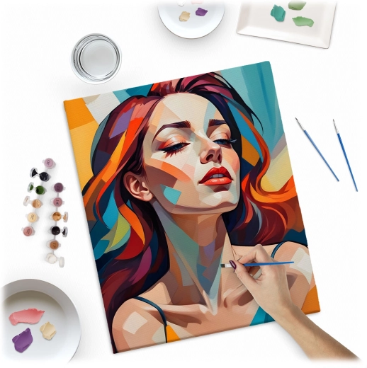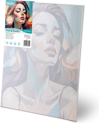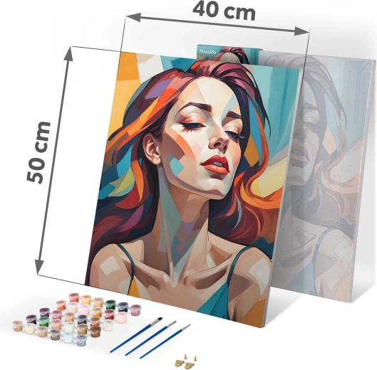 Slip kreativiteten løs med MASSIDOs premium-sæt. Det kvalitetslærred, der er spændt på en træramme med fortrykte og nummererede felter, guider dig trin for trin. Det er bare at matche tal med farver og se, hvordan et levende, moderne kvindeportræt med markante farver og rene linjer vokser frem.