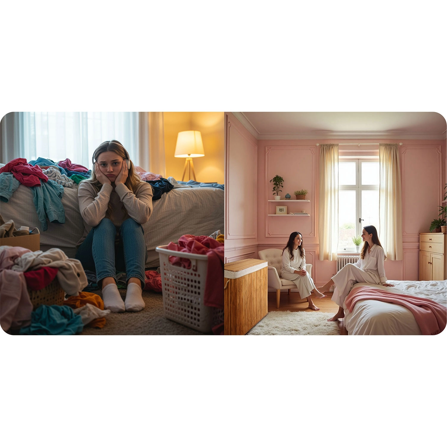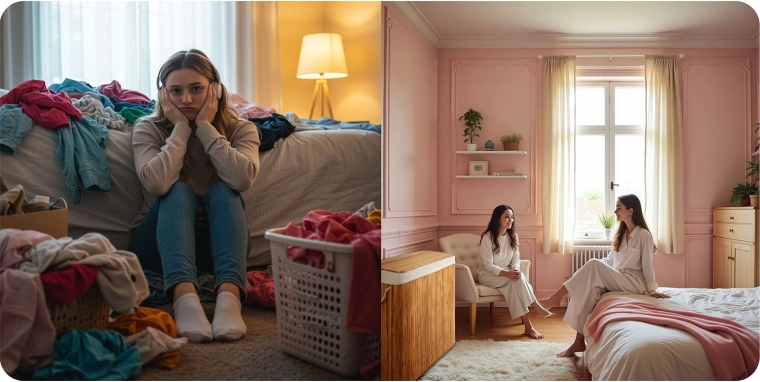 Tre rum til hurtig sortering af vasketøj