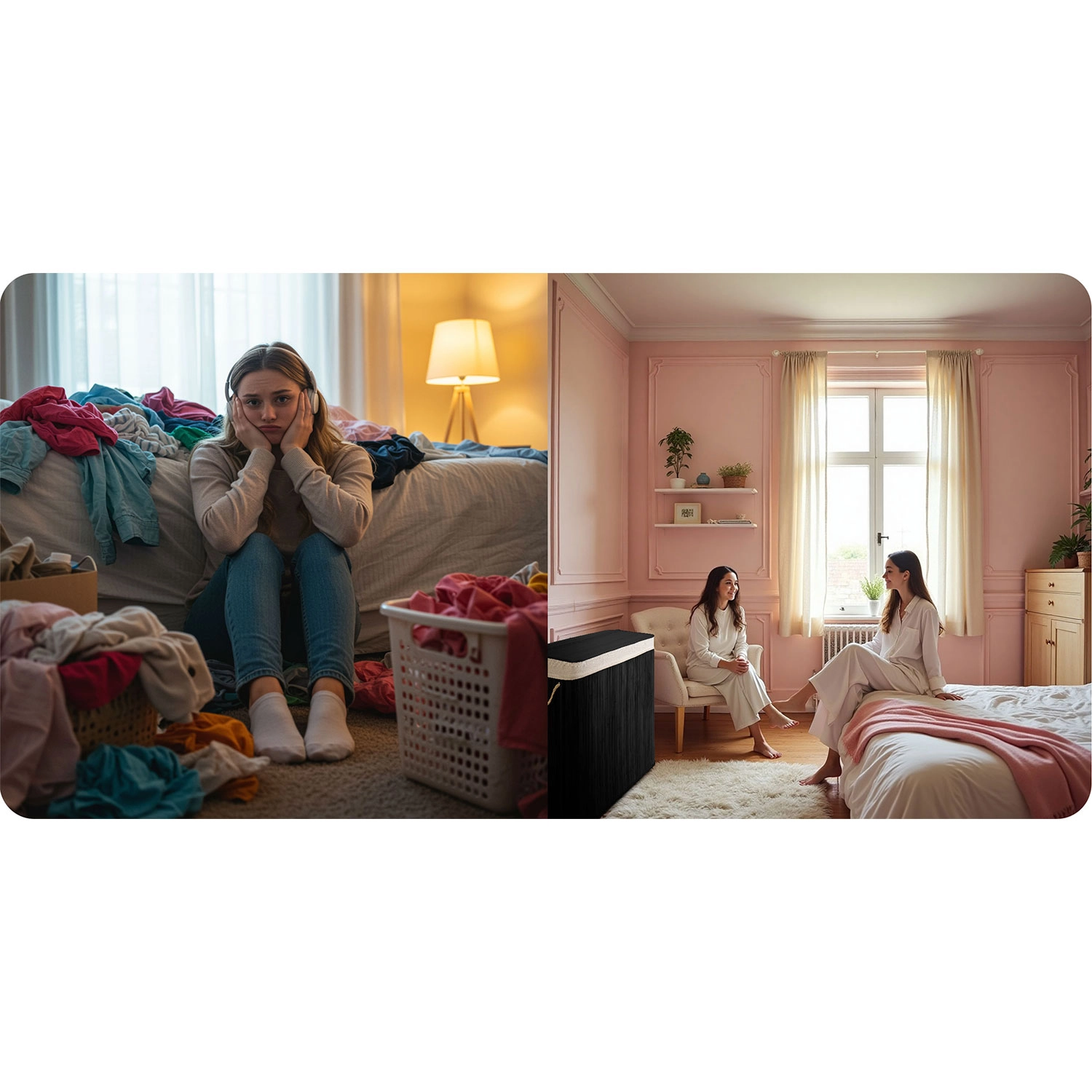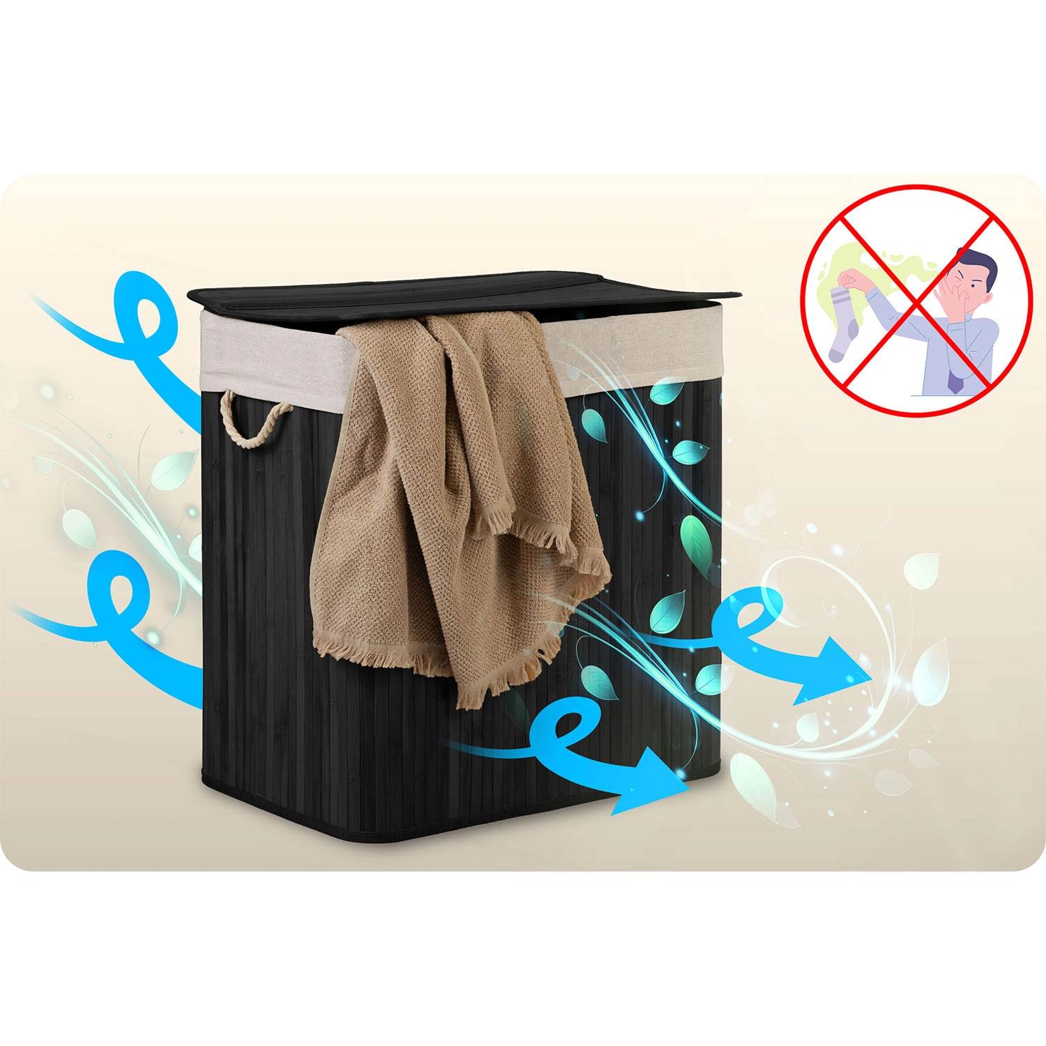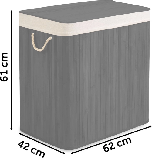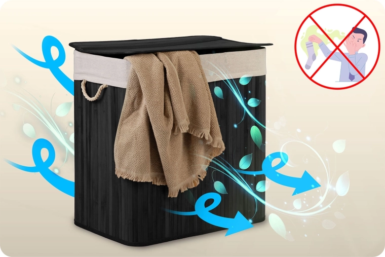 Den holdbare bambuskonstruktion med låg og snorehåndtag passer perfekt i badeværelset, soveværelset og garderoben.