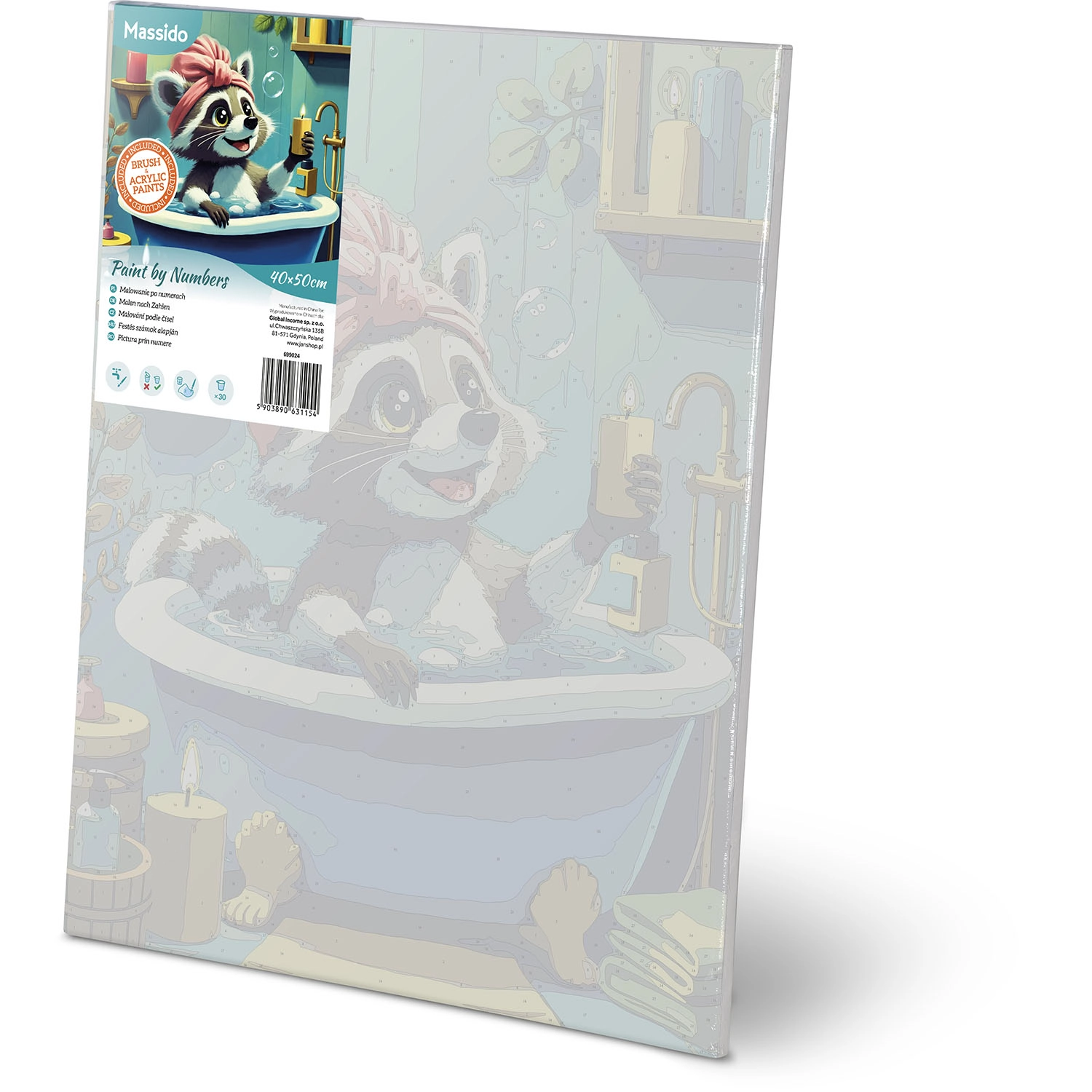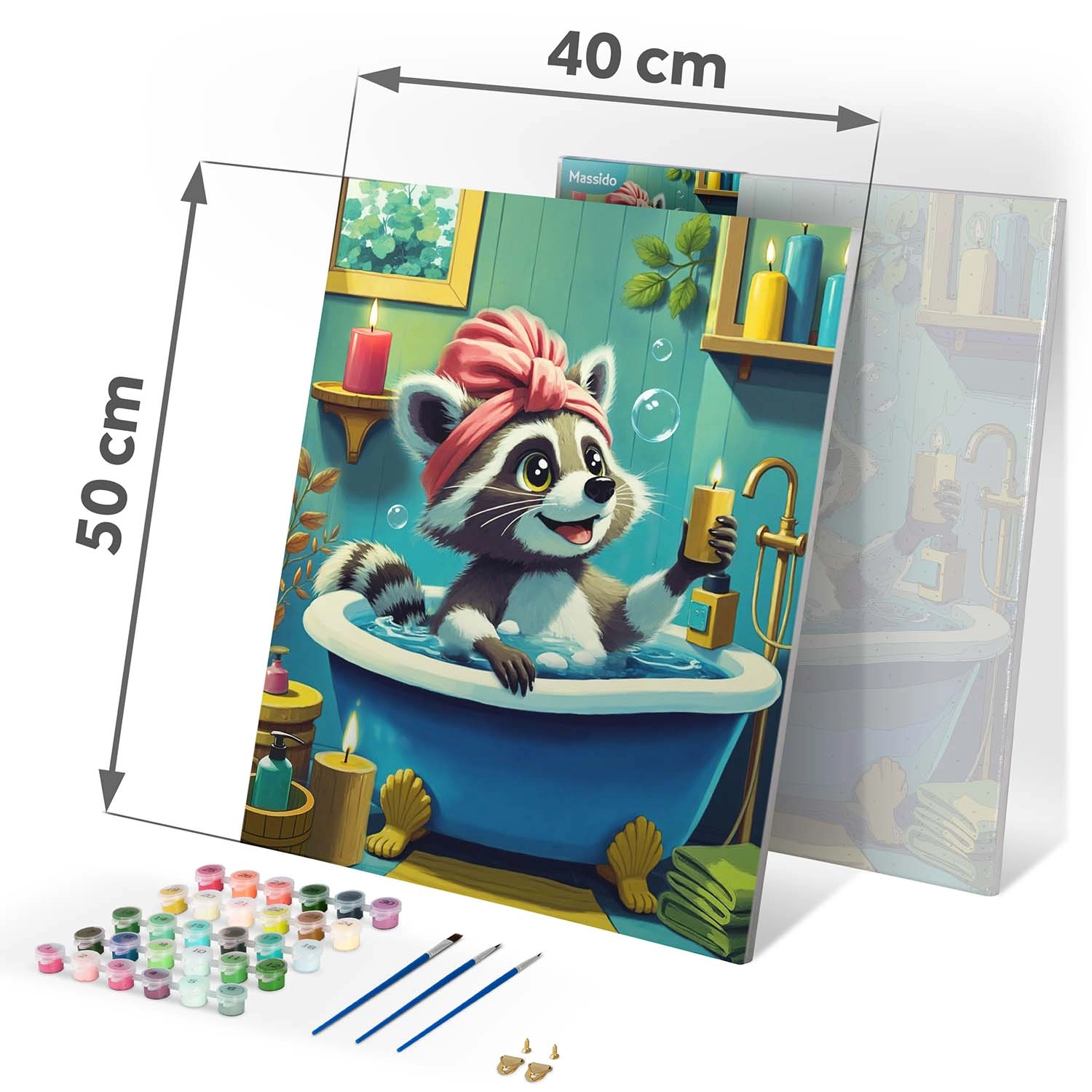 Det komplette sæt indeholder opspændt lærred med motivskitse, 30 dækkende akrylfarver og 3 pensler – du kan begynde at male straks efter udpakning.