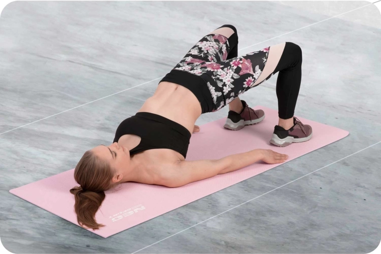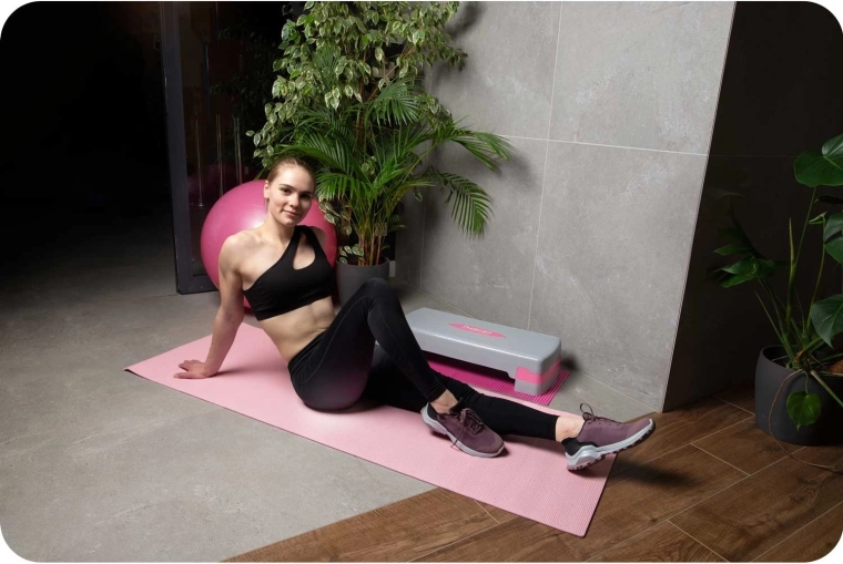 Den teksturerede overflade sikrer pålideligt greb, og 6 mm tykkelse beskytter behageligt knæ, håndled og rygsøjle under hver træning.