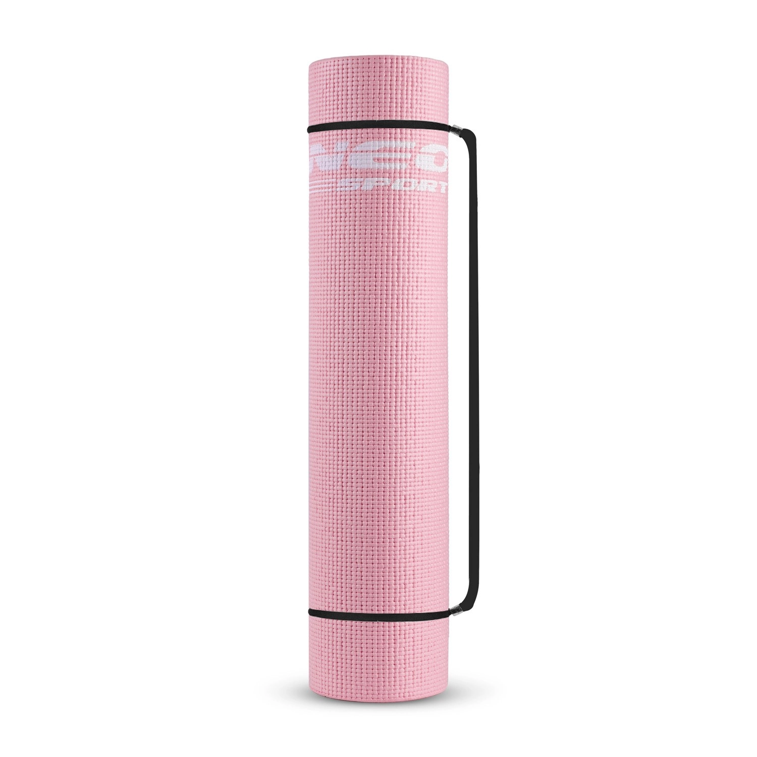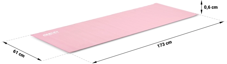 Let og holdbar træningsmåtte NEO SPORT måler 173 × 61 cm og har en tykkelse på 0,6 cm for fremragende stødabsorbering og skridsikker stabilitet. Den er lavet af PVC, som er vandafvisende, nem at rengøre og let at transportere takket være den medfølgende bærerem. Ideel til yoga, pilates, fitness og udstrækning samt hjemmetræning.