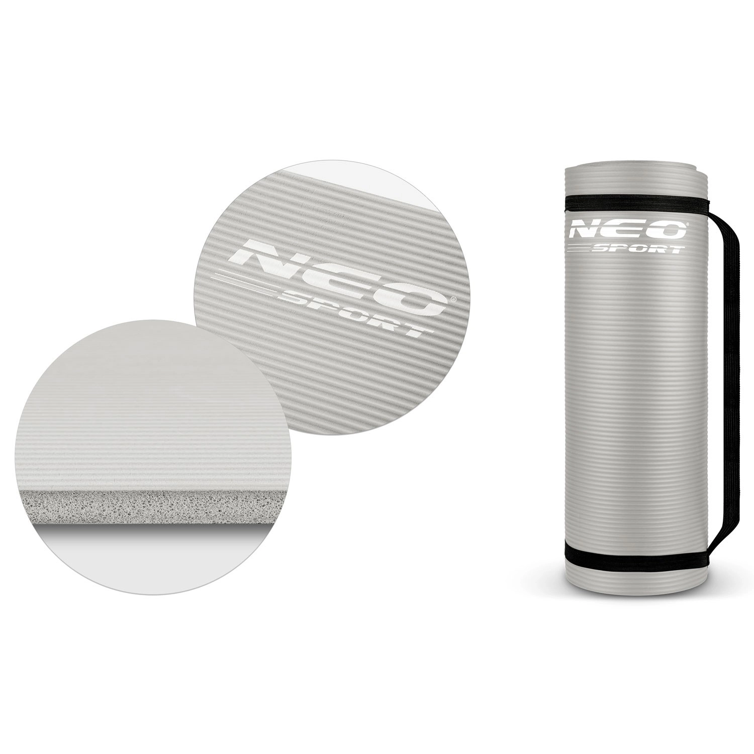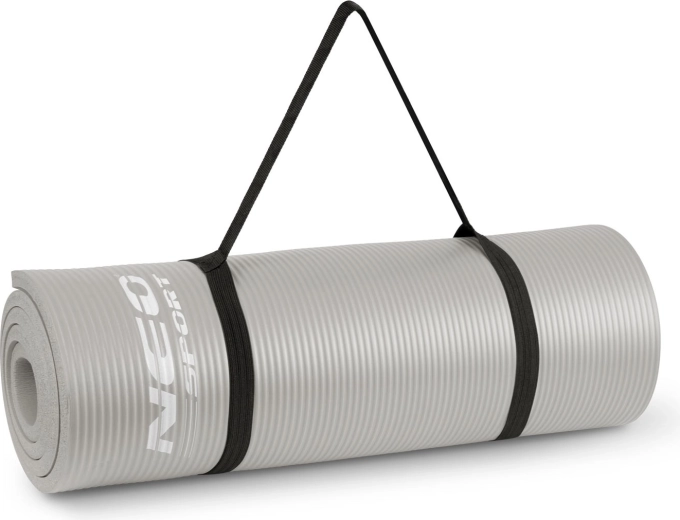 Den alsidige træningsmåtte NEO SPORT i grå tilbyder fremragende stødabsorbering, skridsikkert greb og komfort til daglig træning. Takket være NBR-materialet er den holdbar, vandafvisende, nem at rengøre og behagelig at røre ved. Ideel til yoga, pilates, fitness, udstrækning og hjemmetræning.