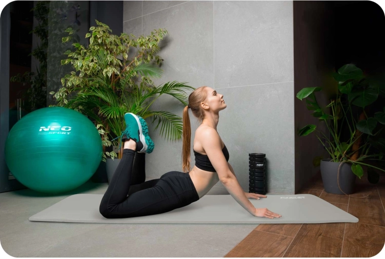 Træningsmåtten NEO SPORT er lavet af kvalitets NBR-skum, som former sig efter kroppen, dæmper stød og giver stabilitet i hver bevægelse. Den skridsikre tekstur øger sikkerheden i stillinger og dynamiske sekvenser, og den vandafvisende overflade er let at holde ren.