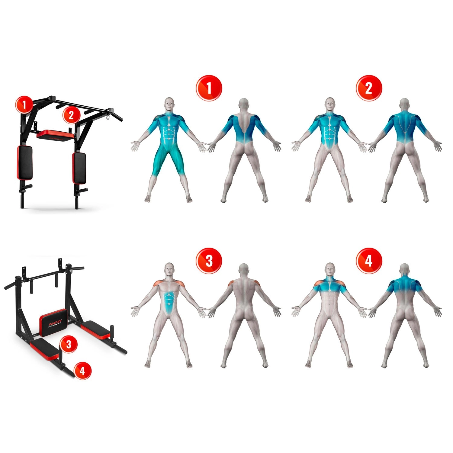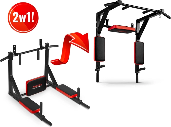 Forvandl dit værelse til et hjemmegym med NEO SPORT NS-319 pullup-bar. Den robuste stålkonstruktion, flere greb og behagelig polstring gør det muligt at træne ryg, skuldre, mave og bryst effektivt. Takket være hurtig vægmontering, maks. belastning 150 kg og multifunktionelt 2-i-1 design kan du nemt træne hele kroppen – fra pullups og dips til benløft. Der medfølger en komplet monteringssæt samt en krog til ophængning af sandsæk.