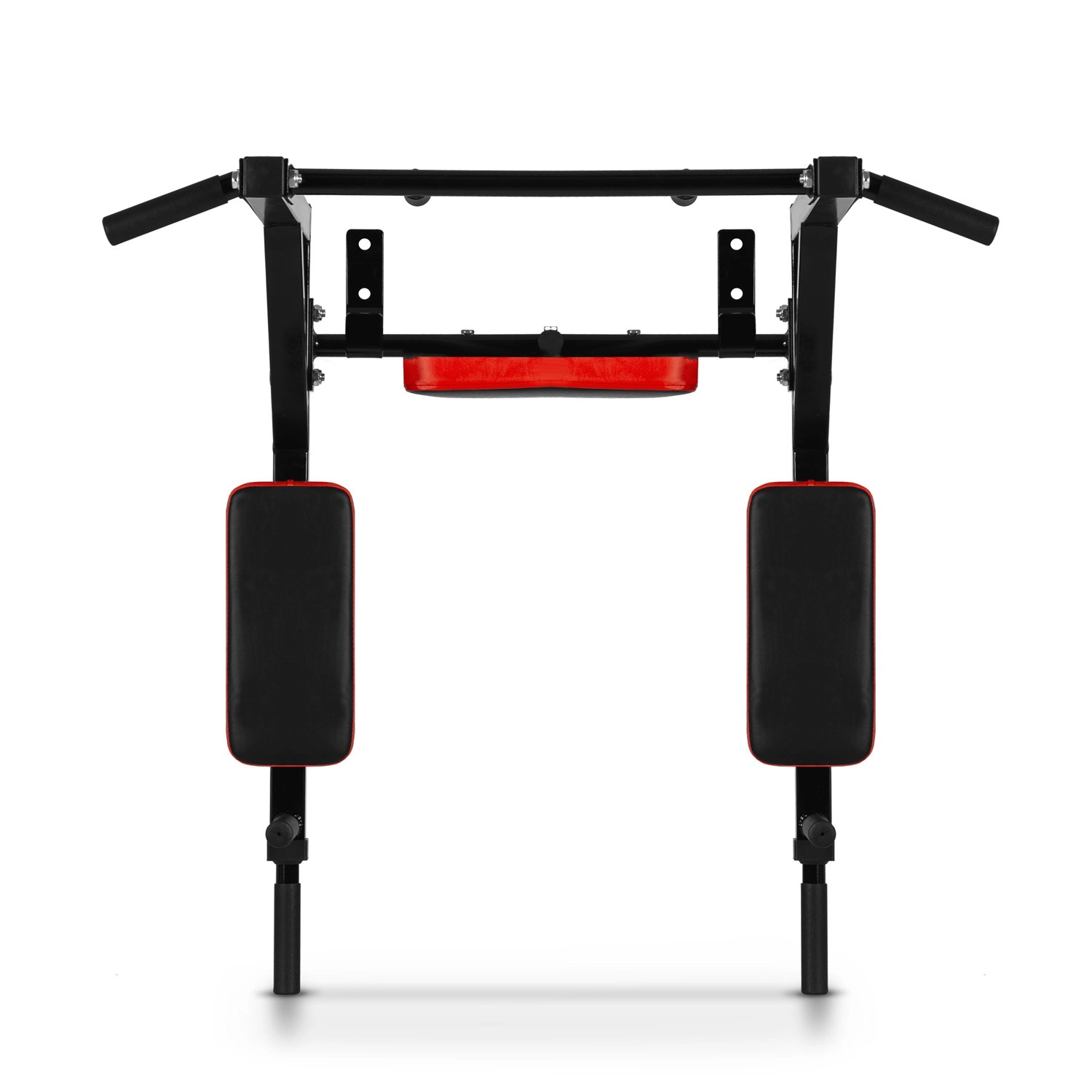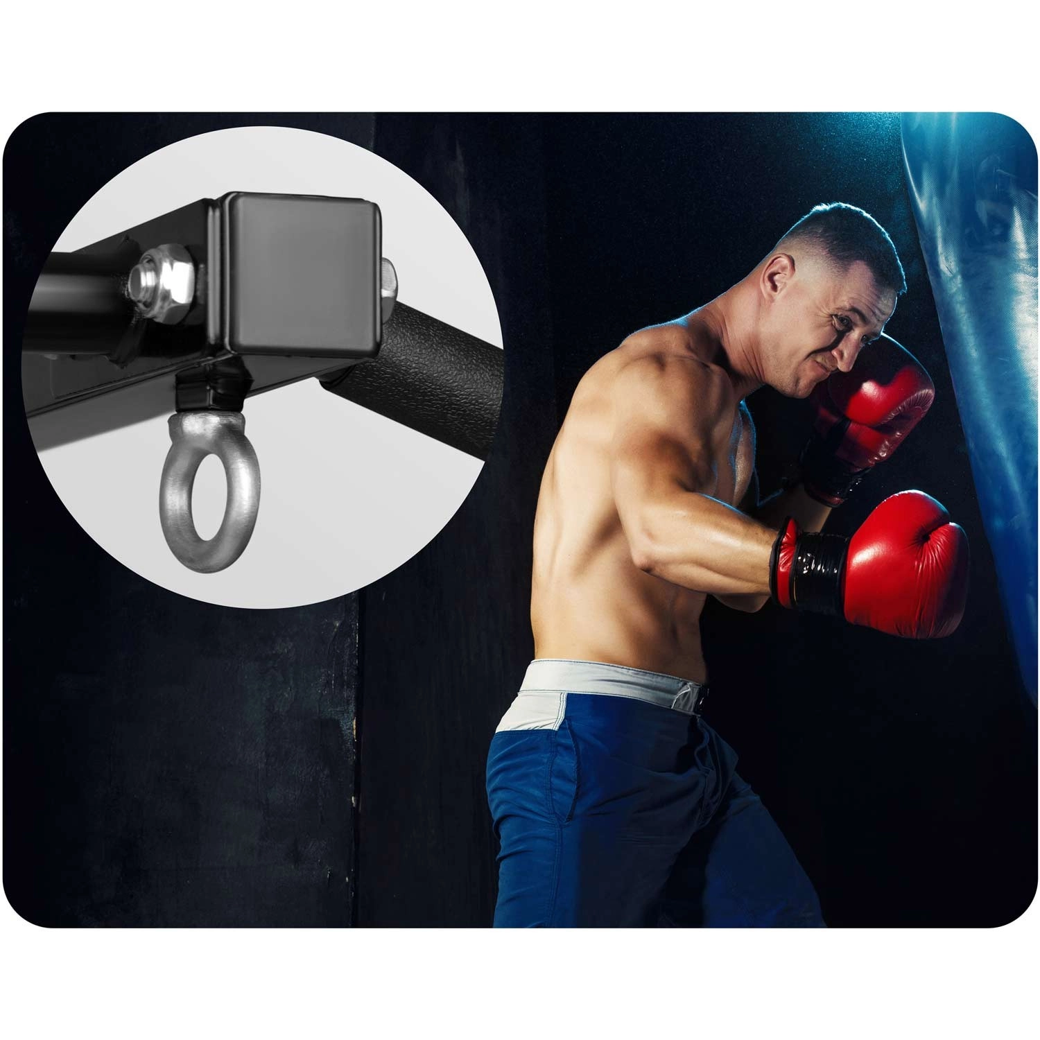 Takket være det smarte 2-i-1 design kan du nemt vende baren og effektivt skifte mellem øvelser for forskellige muskelgrupper. Konstruktionen med høj bæreevne på 150 kg og profilerede rør 38 × 38 mm sikrer holdbarhed selv ved intensiv brug. I pakken finder du et komplet sæt ankre til solid vægmontering samt en praktisk krog til ophængning af sandsæk.