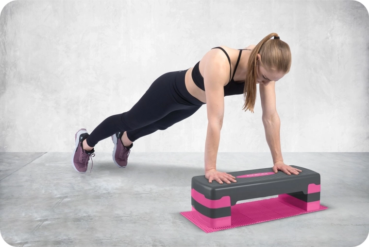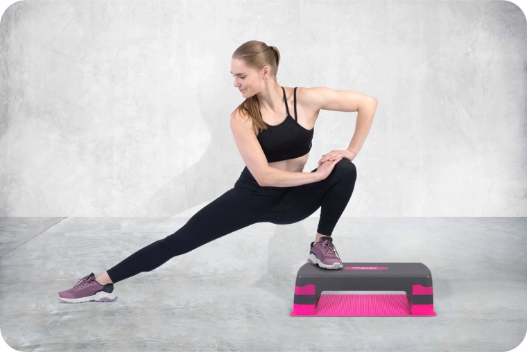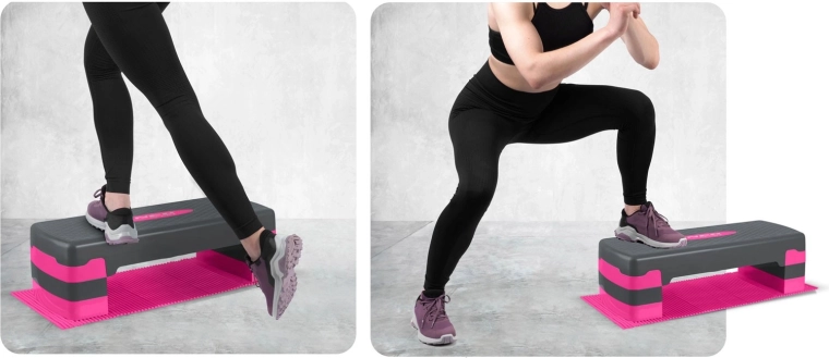 Den teksturerede trædeflade giver sikkert fodfæste og stabilitet selv ved hurtige step-kombinationer.