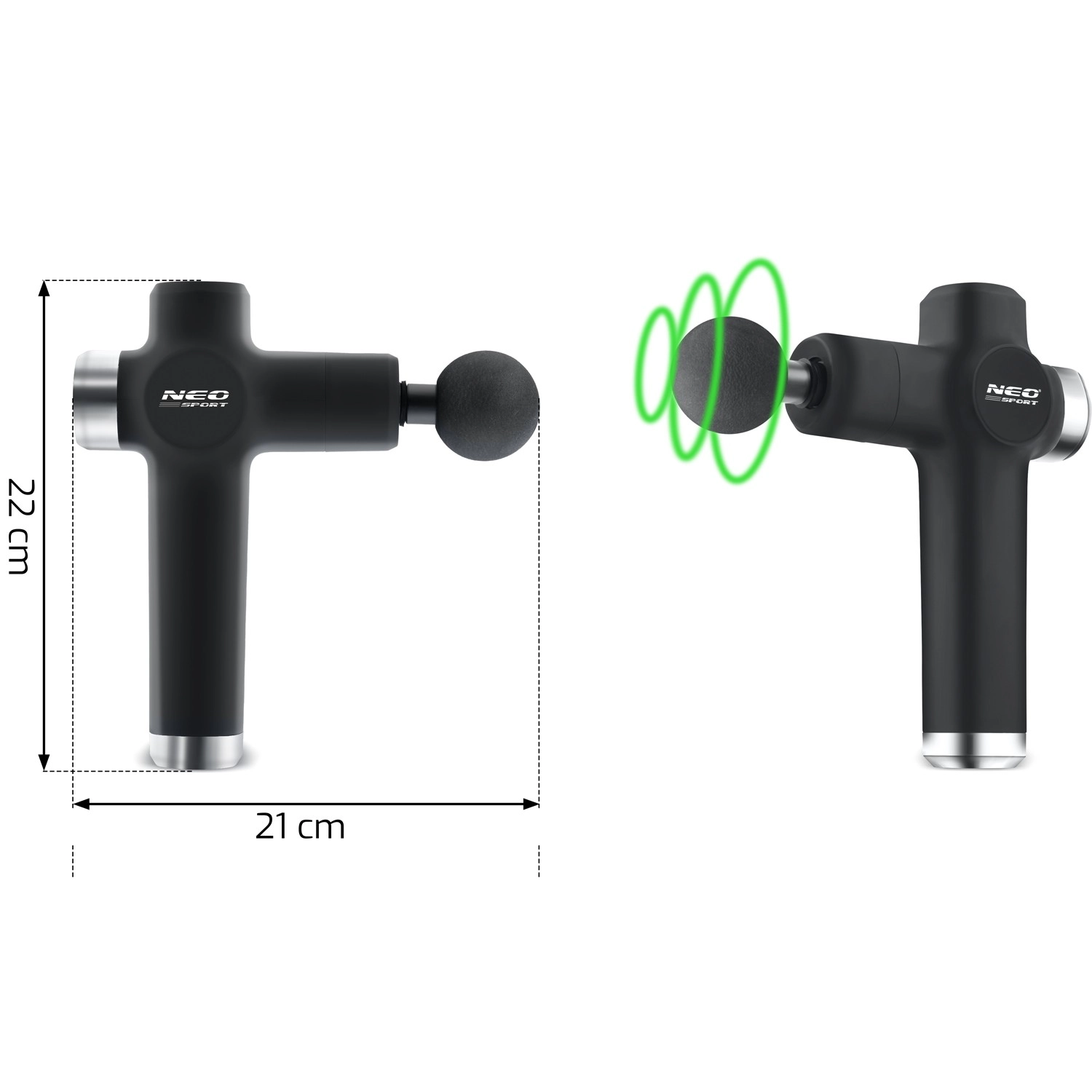 NEO SPORT NS-501 er en kompakt massagepistol til daglig lindring af stive muskler, hurtigere restitution efter træning og et behageligt afslappende massageritual. Det ergonomiske T-håndtag ligger godt i hånden, den stille drift forstyrrer ikke omgivelserne, og intelligent motorbeskyttelse forhindrer overbelastning ved for stort tryk.