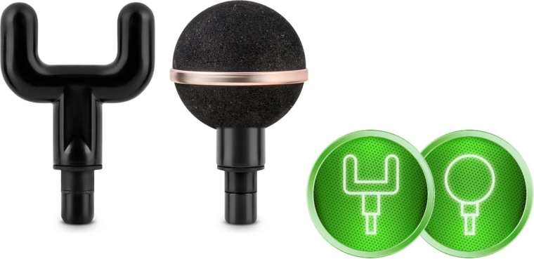 Gaffel til rygsøjle- og akillesseneområdet, kuglehoved til store muskler, fladt hoved til fortættet væv, projektil til punkttryk samt andre specialtilbehør.