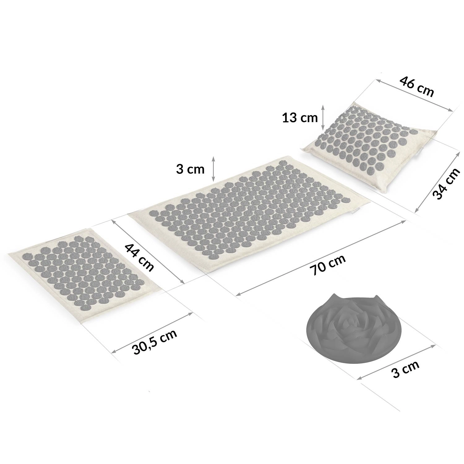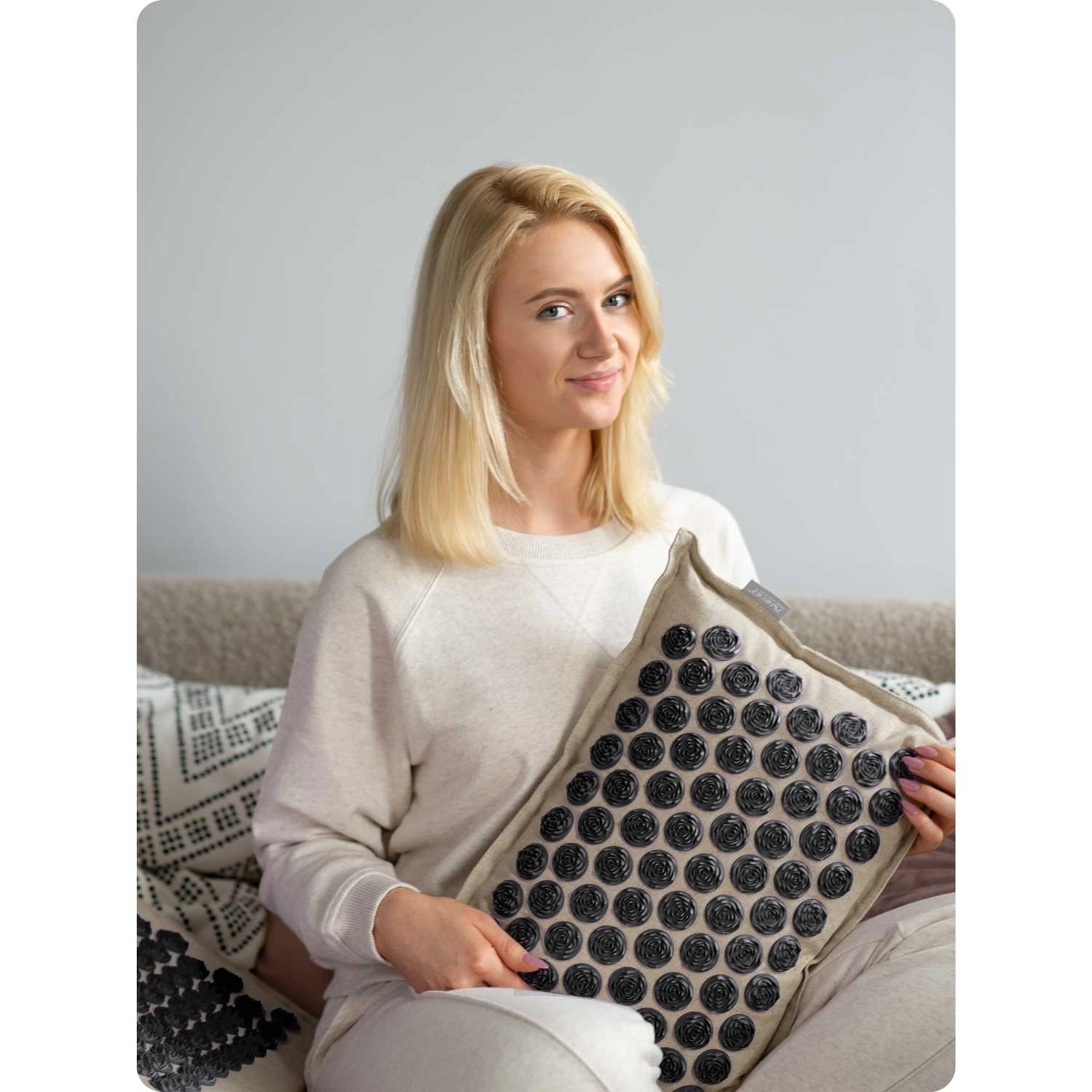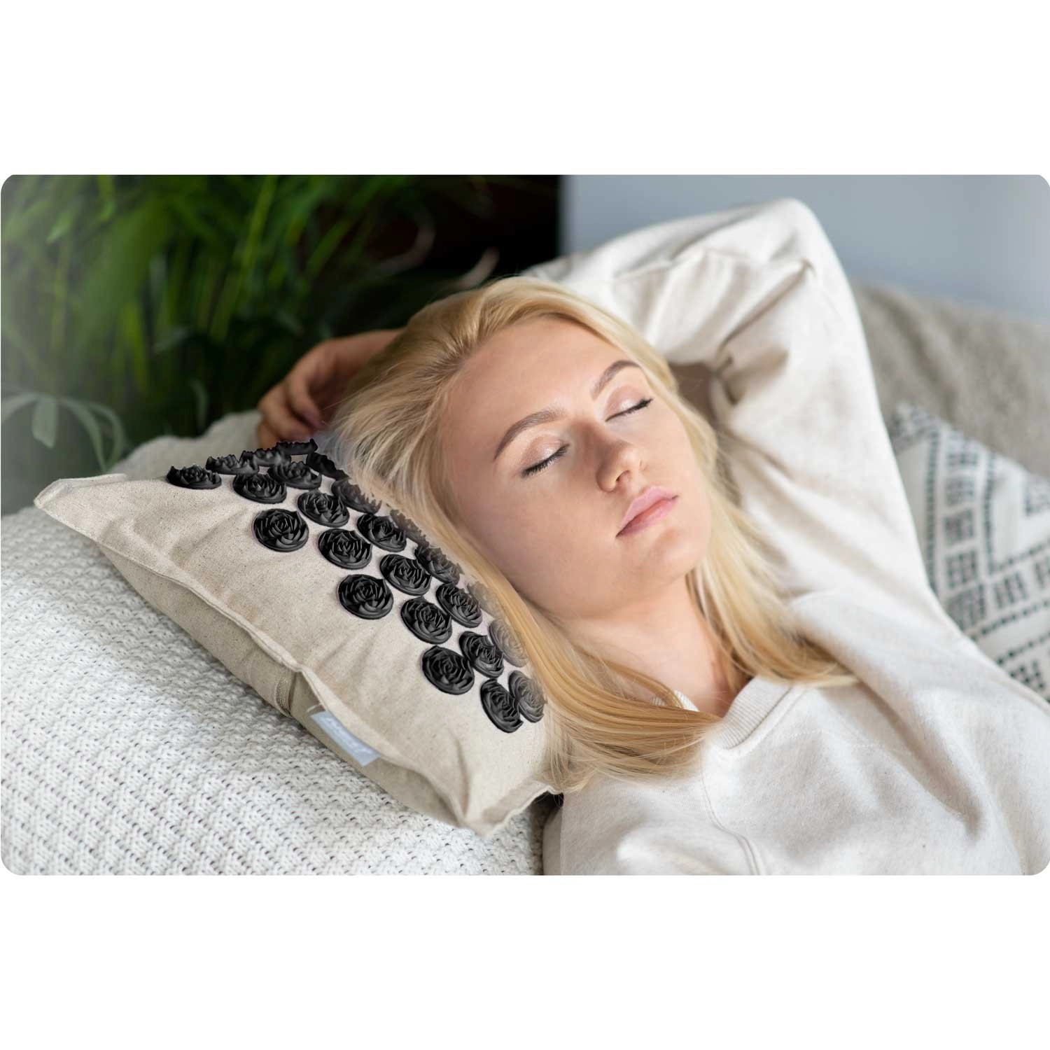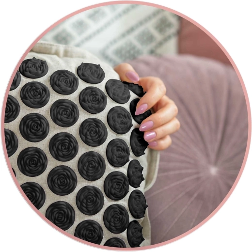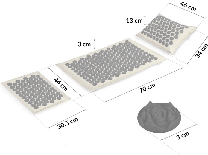 Hovedmåtten har 240 og puden 76 akupressurrosetter til målrettet trykstimulering – ideel til ryg, nakke og skuldre.