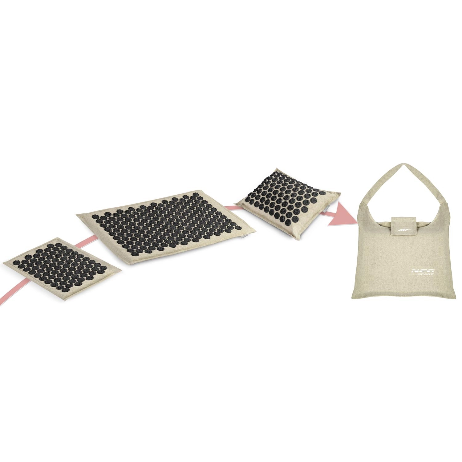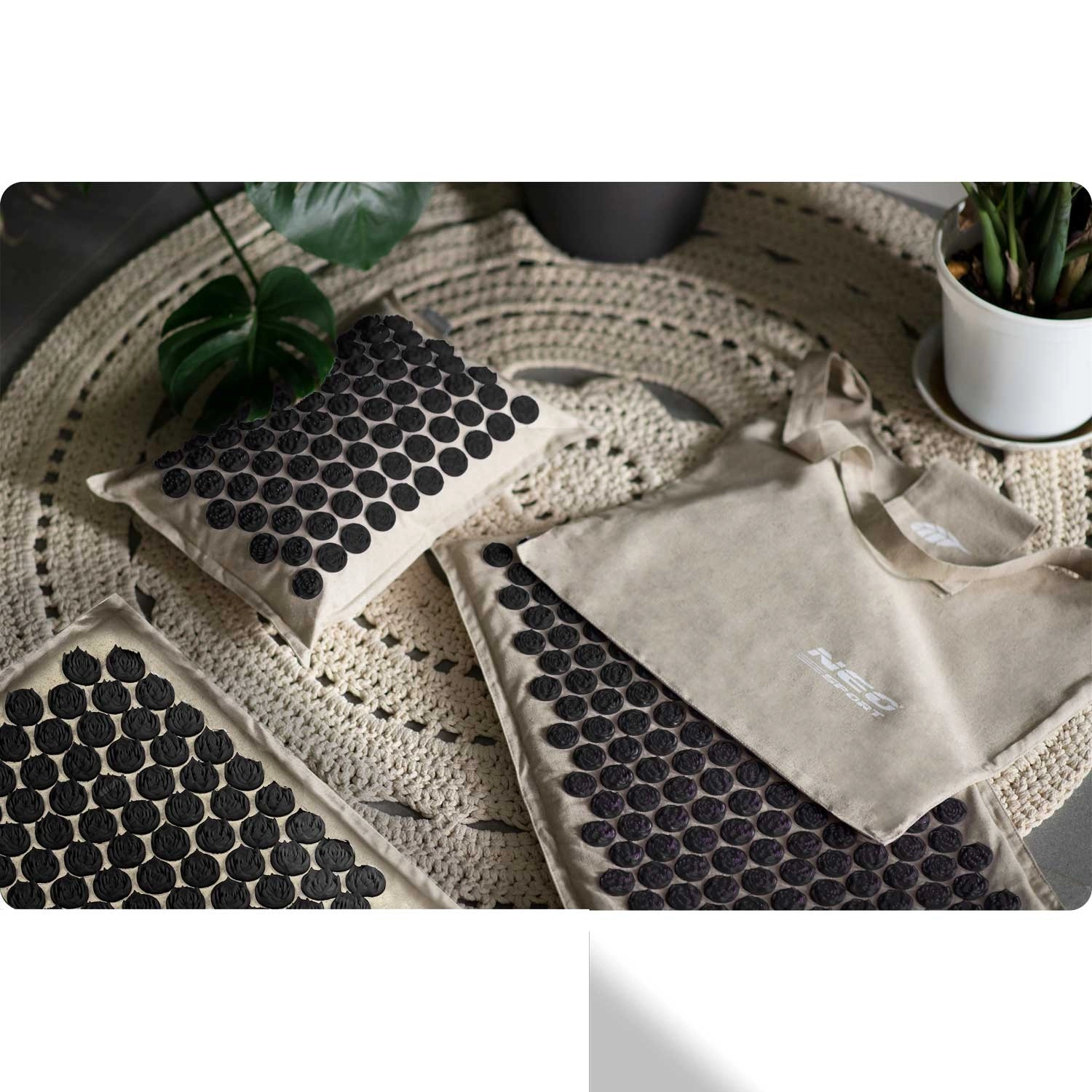 Akupressursættet NEO SPORT er designet til daglig afslapning, støtte til blodcirkulationen og afspænding af muskelspændinger i ryg, nakke og skuldre. Tæt placerede plastrosetter med pigge påvirker trykpunkterne og kan dermed hjælpe ved hoved- og nakkesmerter, rygsmerter, stress og træthed. Med to måtter og en pude kan du nemt tilpasse det behandlede område.