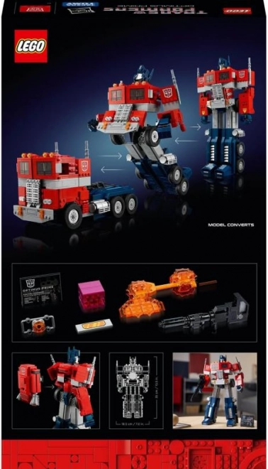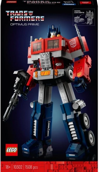 LEGO Optimus Prime 10302 er et 2-i-1 byggesæt til voksne Transformers-fans, som giver mulighed for at bygge en detaljeret model af den klassiske robot. Indeholder 1508 klodser, ideelt til passionerede samlere.