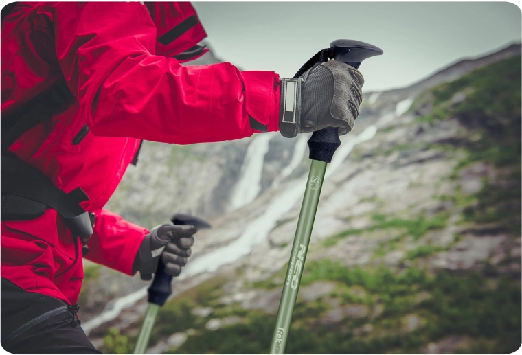 Åndbart EVA-skum tørrer hurtigt, absorberer sved og giver et sikkert greb. Den bløde, justerbare håndstrop holder stavene stabilt i hånden uden overdreven klemmen.