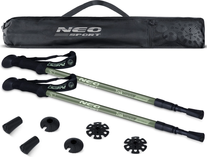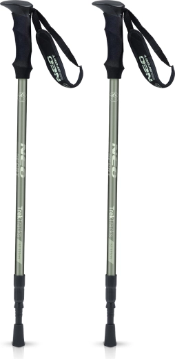 Trekkingstave NEO SPORT NS-381 er designet til krævende forhold – fra bjergstier til snedækkede flader. Den tre-sektions teleskopkonstruktion med intervallet 65–135 cm muliggør hurtig justering efter brugerens højde og terrænprofil. Takket være den lave vægt og de kompakte mål er de nemme at transportere i rygsækken eller fastgøre udenpå.