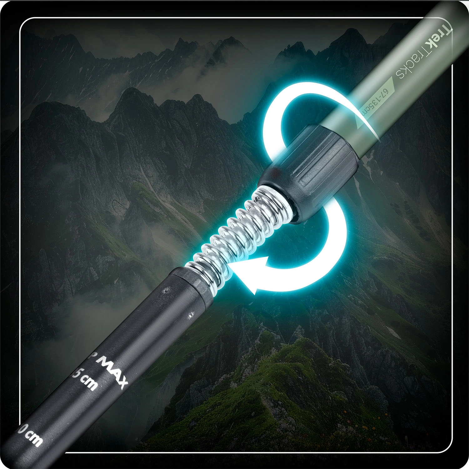 ANTYSHOCK™-støddæmpning absorberer effektivt stød, reducerer vibrationer og skåner led og muskler på lange vandringer. Det ergonomiske håndtag i EVA-skum er åndbart, tørrer hurtigt og sikrer et stabilt greb. Den bløde, justerbare strop stabiliserer hånden uden behov for hårdt greb.