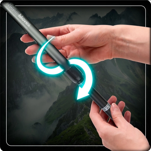 Teleskopisk justering for præcis tilpasning til både højde og terræn. Sammenfoldede stave kan nemt fastgøres til rygsækken og tages med overalt.