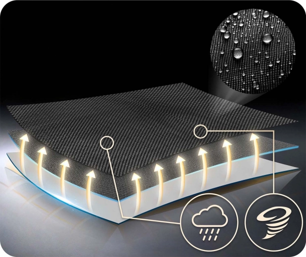 Det slidstærke stof er behageligt at røre ved, let at rengøre og klarer uden problemer udendørs forhold.