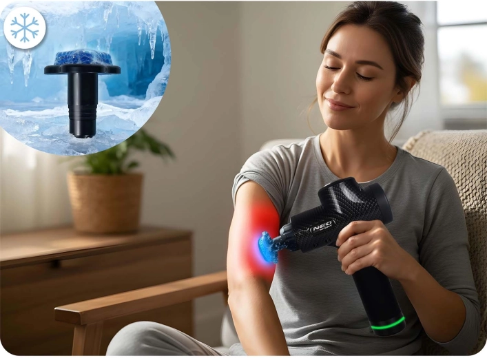 - Kølende gelhoved: efter forudgående nedkøling beroliger irritation, reducerer hævelser og betændelser – ideelt efter overbelastning eller intens præstation.