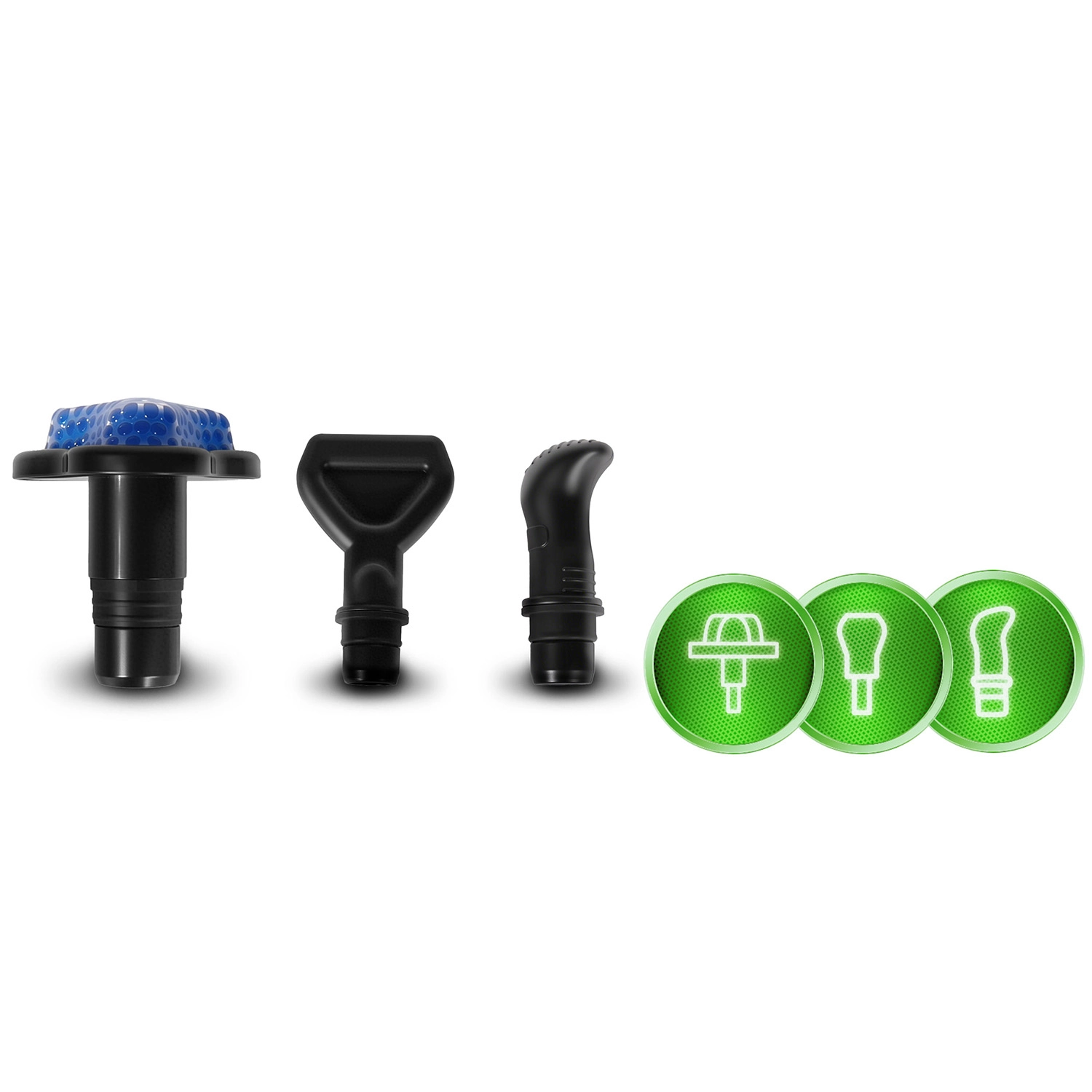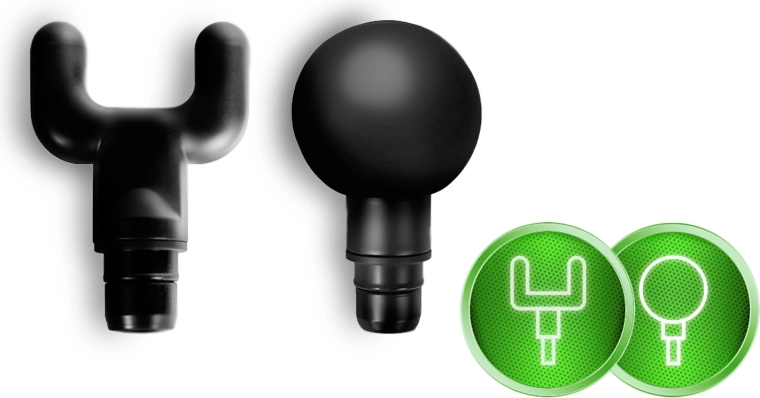 U-hoved til området omkring rygsøjlen, kuglehoved til større muskelgrupper, fladt hoved til alsidig afslapning, spidshoved til intens punktmassage, kølende gelhoved, bladformet hoved til langs knoglestrukturer, fingerhoved til præcist tryk, dobbelt svampehoved til øget blodcirkulation og blødt svampehoved til følsomme områder.