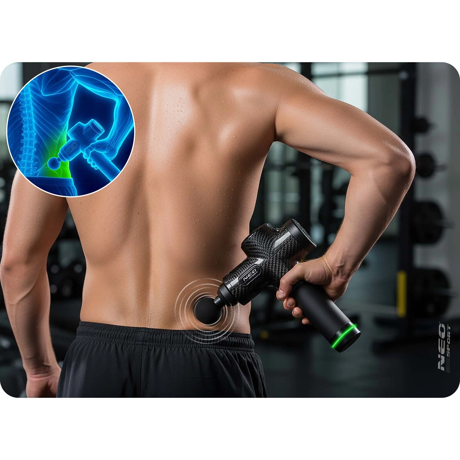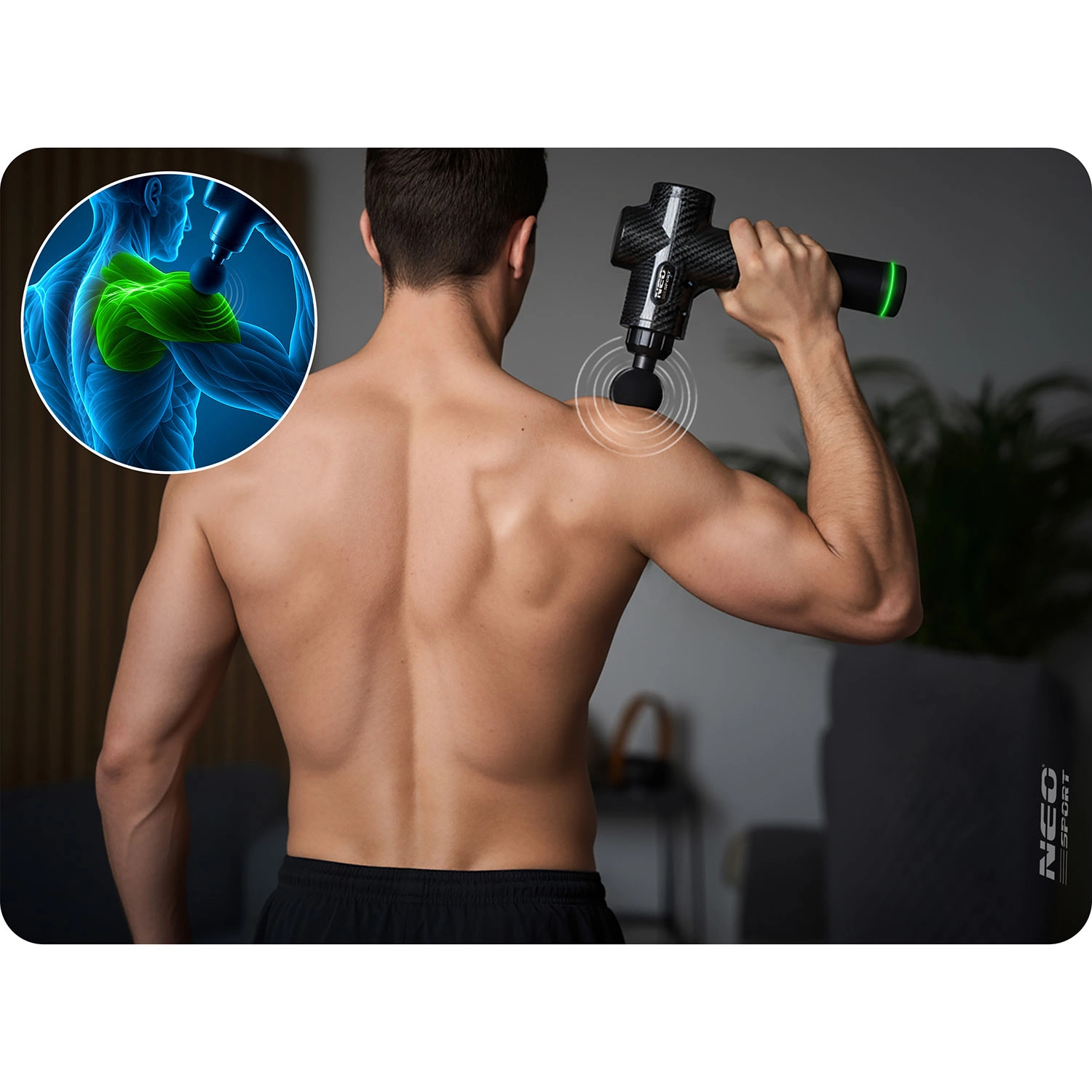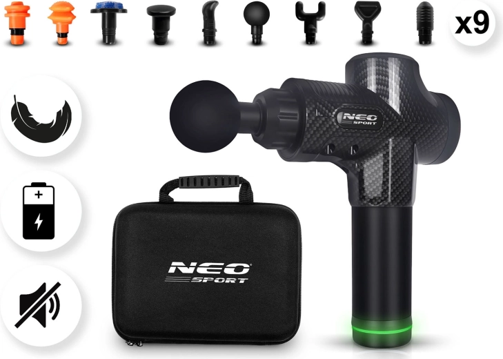 Oplev effektiv lindring af spændinger med massagepistolen NEO-SPORT NS-503. Den tilbyder op til 30 intensitetsniveauer, 9 udskiftelige hoveder til forskellige kropsområder og lang batteritid. Takket være ergonomisk design, trådløs drift og et praktisk etui er den ideel derhjemme, i fitnesscentret og på farten. Sikker brug sikres af overophedningsbeskyttelse og kvalitetsforarbejdning, der opfylder europæiske standarder.