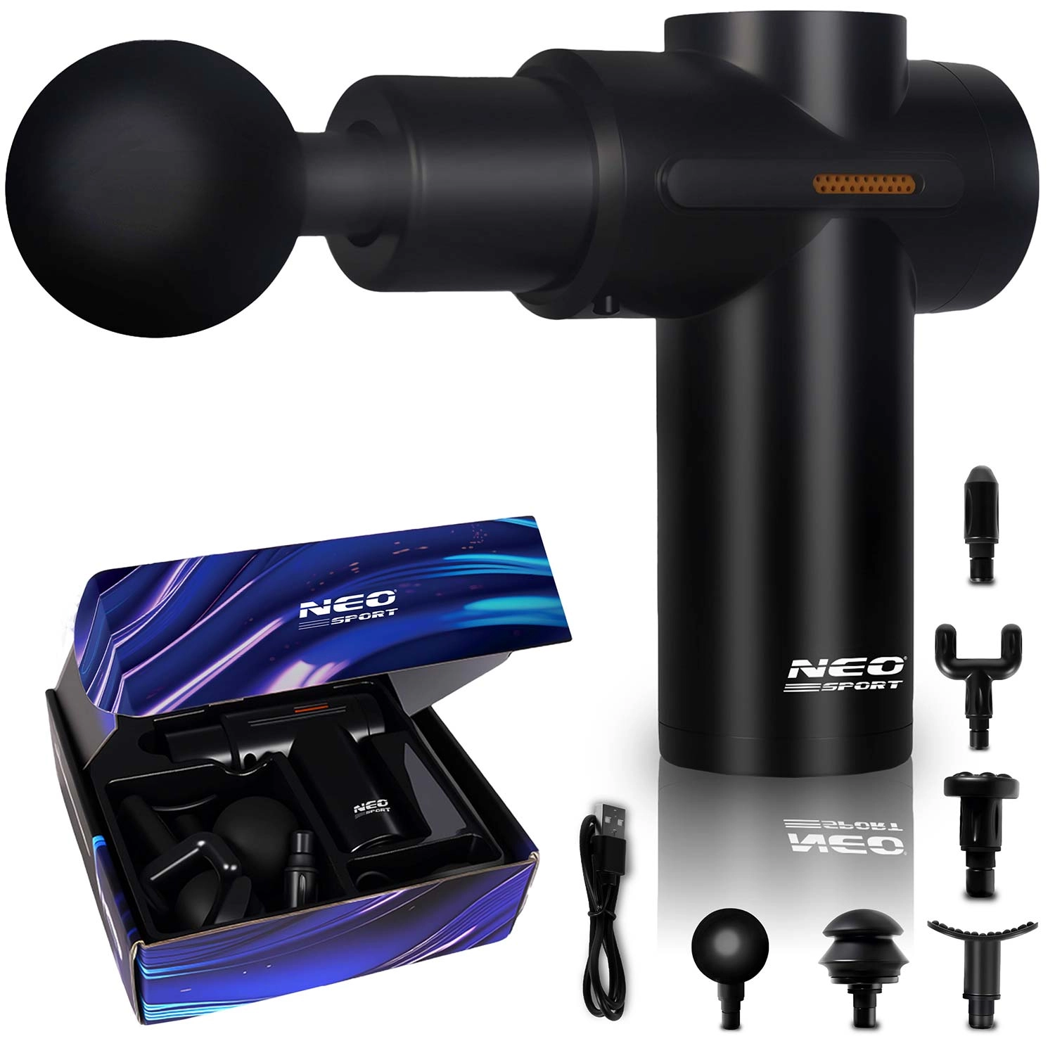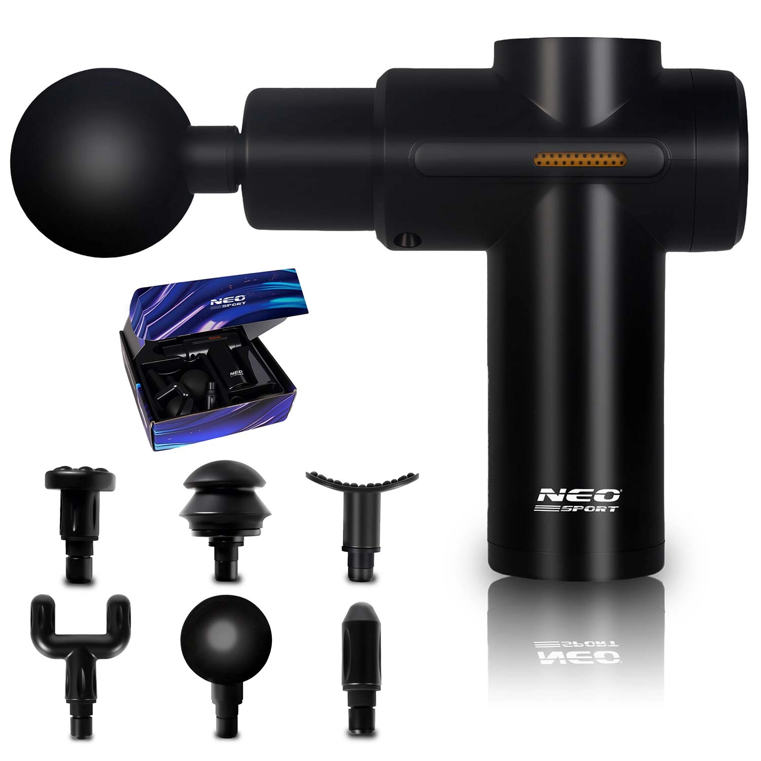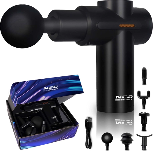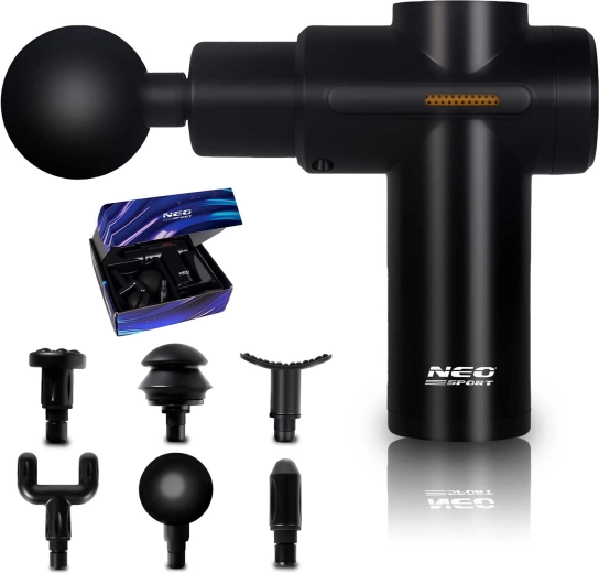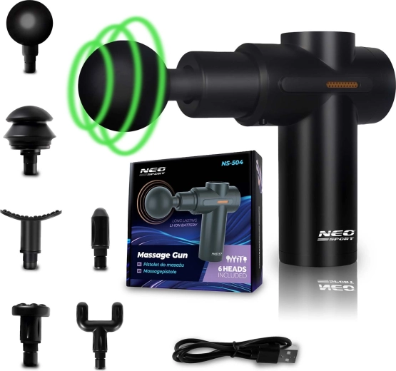 Lindr stive muskler når som helst og hvor som helst med den trådløse massagepistol NEO-SPORT NS-504. Den tilbyder 6 intensitetsniveauer, 6 udskiftelige hoveder til forskellige muskelgrupper og ergonomisk design for behageligt greb. Takket være den holdbare indbyggede batteri og opladning via USB‑C er den ideel derhjemme, i fitnesscenteret og på farten. Overophedningsbeskyttelse og premium udførelse, der opfylder europæiske sikkerhedsstandarder, sikrer rolig og tryg brug.