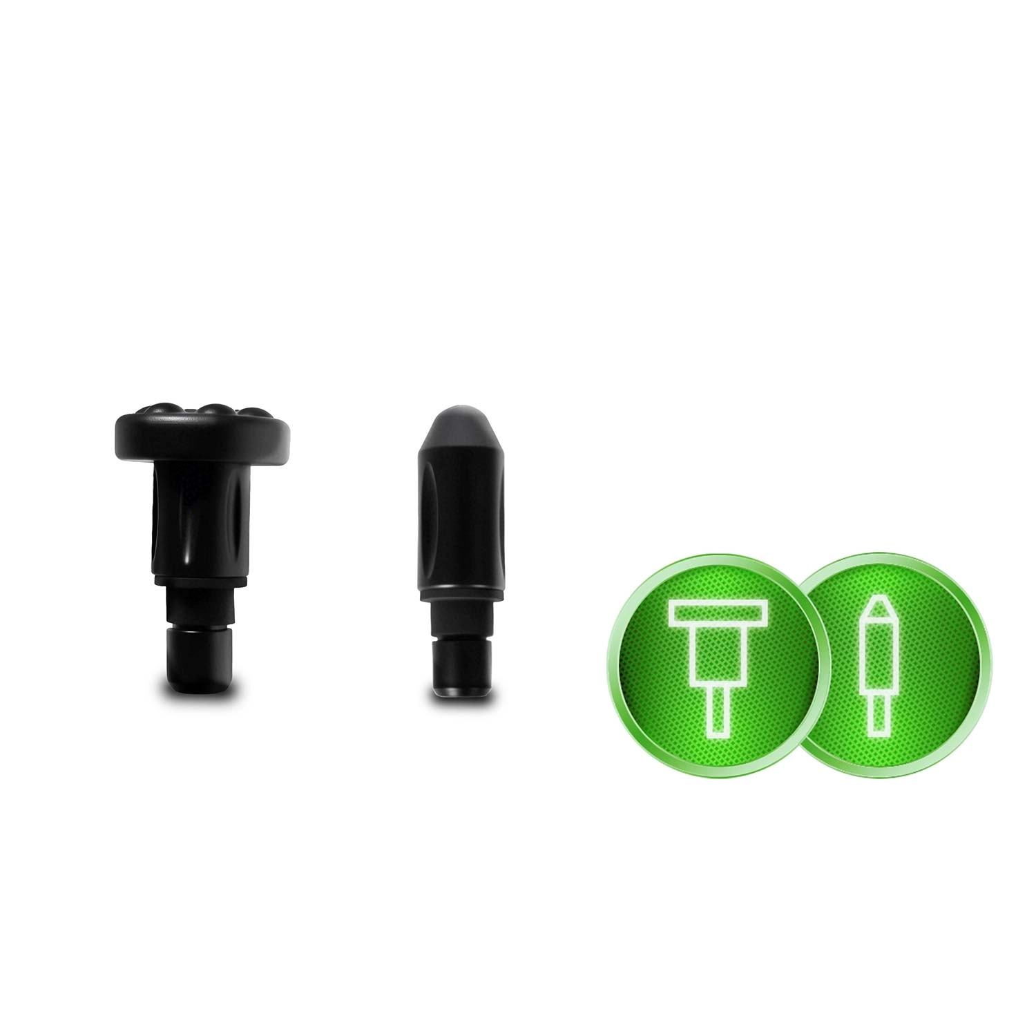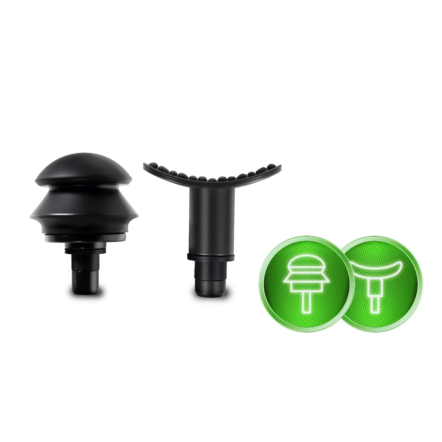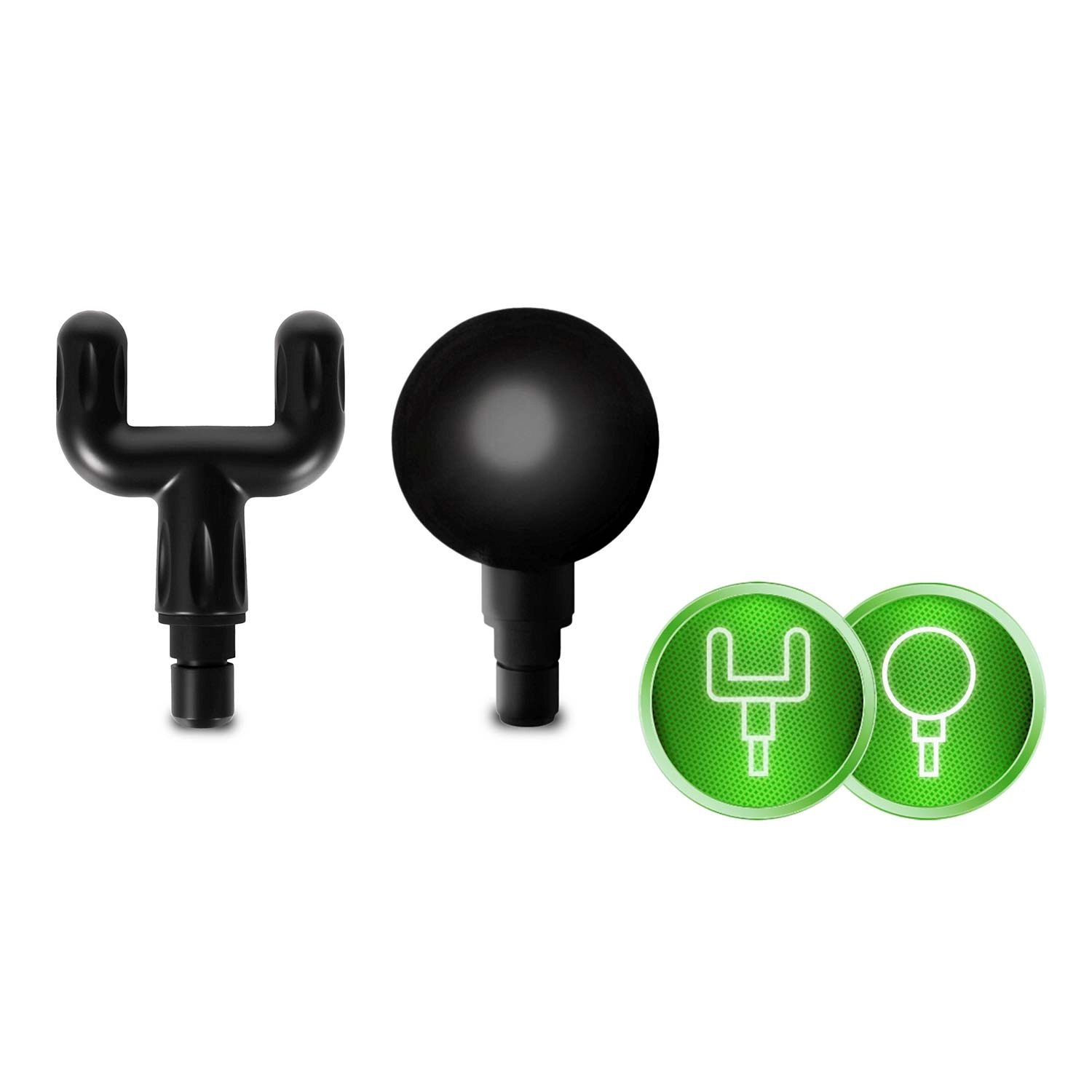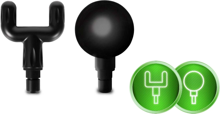 Skift mellem kuglehoved, U‑gaffel, fladt hoved med knopper, præcist “projektil”, blød “svamp” samt buet hoved til fødder og lægge. Hvert hoved retter sig mod en specifik muskelgruppe for maksimal effekt.