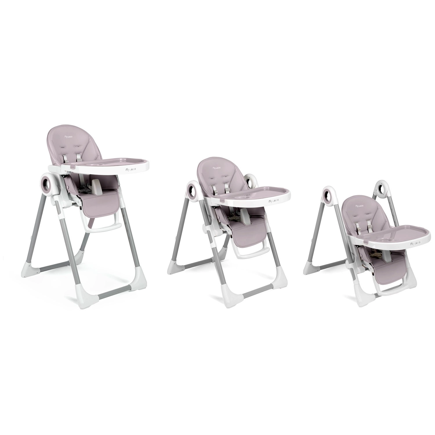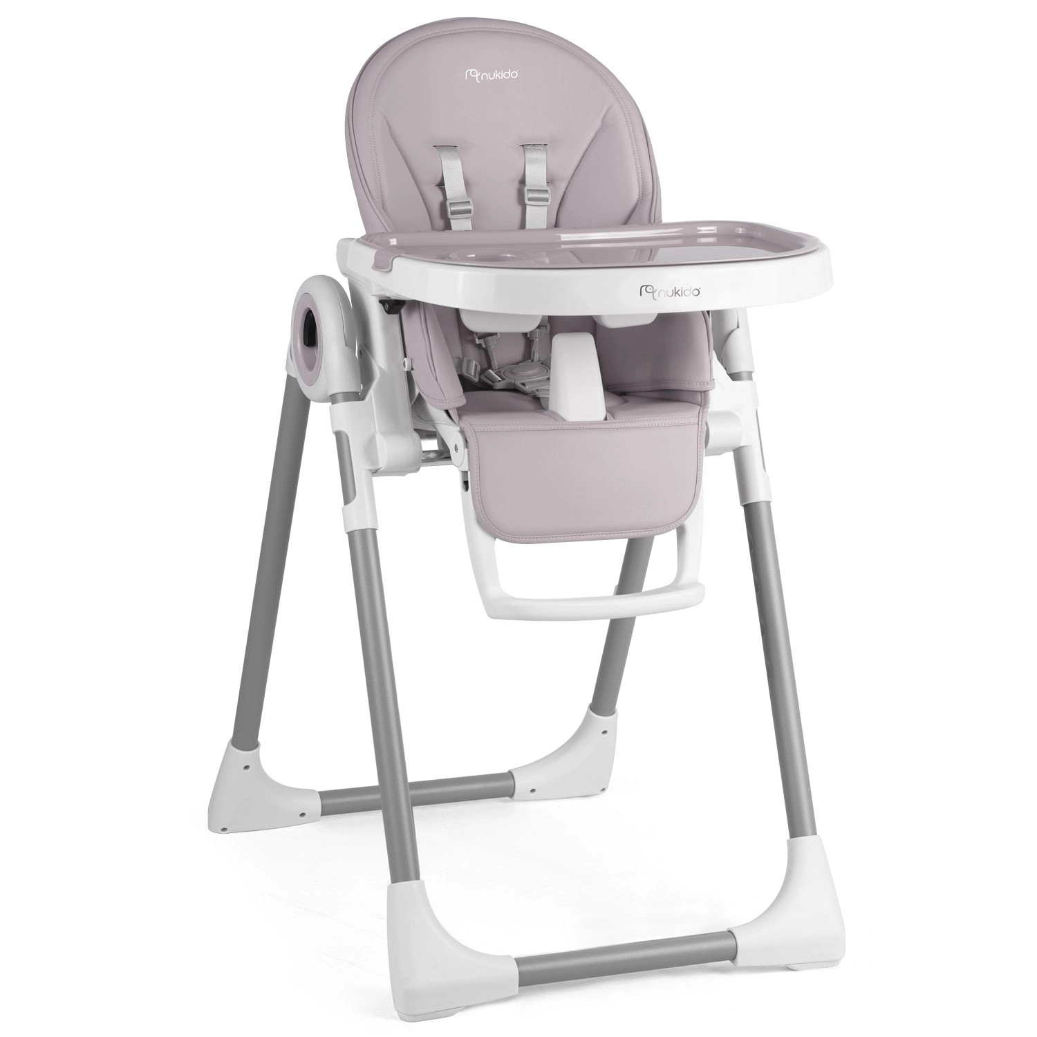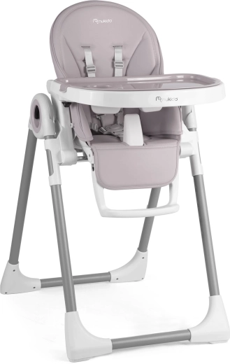 Den moderne høj stol NUKIDO Belo vokser med dit barn og fungerer som liggestol, spiseplads og legeområde. Med trinløs højdejustering, ryglæn med 5 positioner og justerbar fodstøtte sikrer den altid behagelig siddestilling. Den aftagelige bakke med ekstra indsats gør både fodring og rengøring nem, mens 5-punkts seler og certificering EN 14988 garanterer sikkerhed. Bageste hjul og sammenklappelig konstruktion sparer både plads og tid.