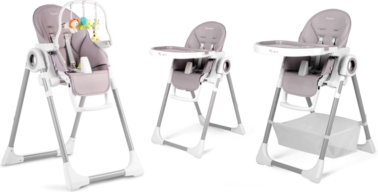 - Flere funktioner i én: høj stol, liggestol og legeområde.