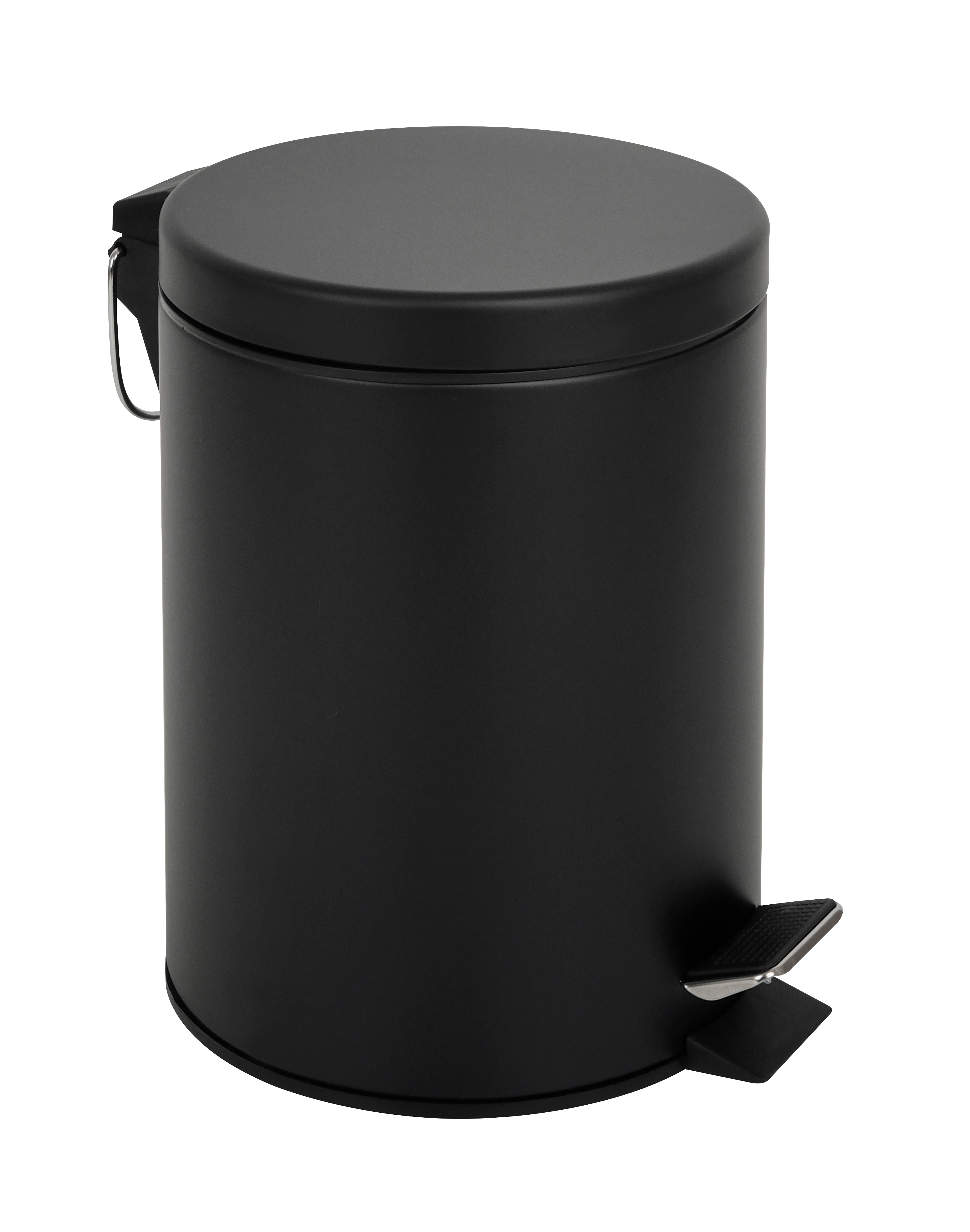 Kompakt pedalbetjent skraldespand med en kapacitet på 5 l er ideel til badeværelse, køkken eller kontor. Takket være rustfrit stål-konstruktionen og den elegante sorte finish er den let at vedligeholde og passer perfekt ind i et moderne interiør. Den pedalbetjente mekanisme sikrer hygiejnisk og bekvem åbning uden brug af hænder.