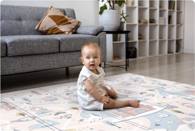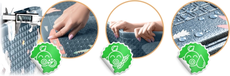 Tykkelsen på 1 cm af kvalitets XPE-skum sikrer et blødt afsæt, dæmpning af fald og behagelig varme fra gulvet. Ideel til hårde overflader som fliser eller parket.