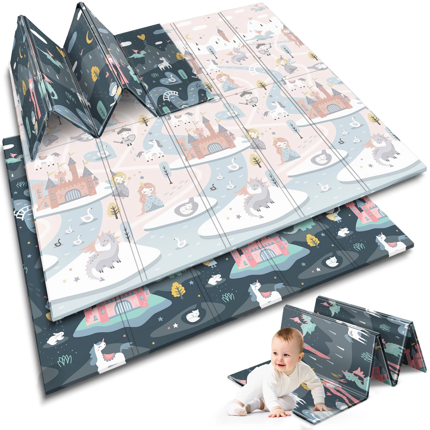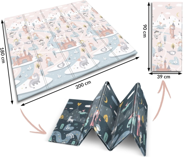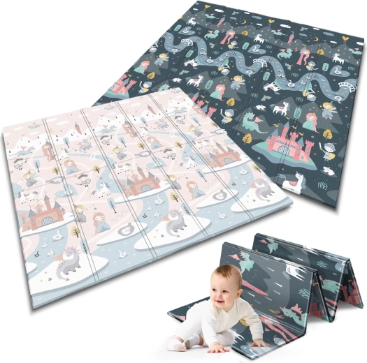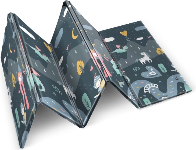 Den sammenklappelige legemåtte NUKIDO af premium, lugtfrit XPE-skum skaber en blød, skridsikker og hygiejnisk overflade til både tumlinger og førskolebørn. Takket være 1 cm tykkelse absorberer den effektivt stød, beskytter mod det hårde gulv og giver termisk isolering. Den dobbeltsidede printning tilbyder to stilfulde varianter – blide pasteller og et mørkere eventyrdesign – så måtten matcher indretningen og forbliver spændende for børn i længere tid.