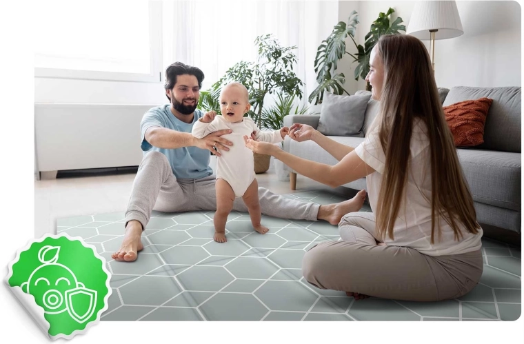 XPE-skum uden BPA, PVC, ftalater og formamid. CE-certificering og EN71-1/2/3-tests bekræfter den høje sikkerhedsstandard for børn.